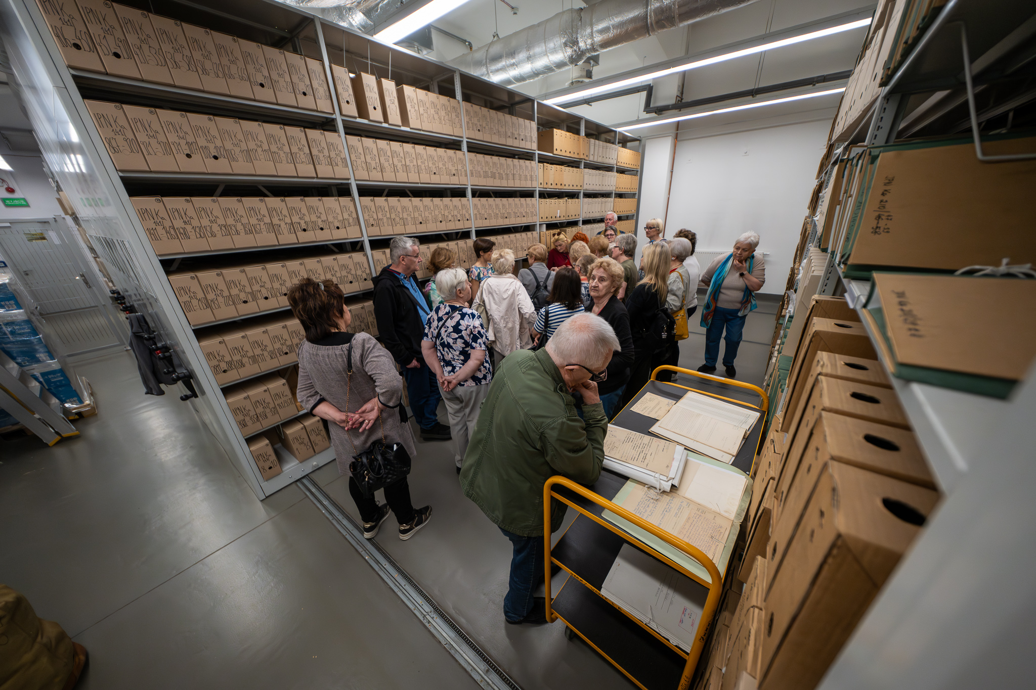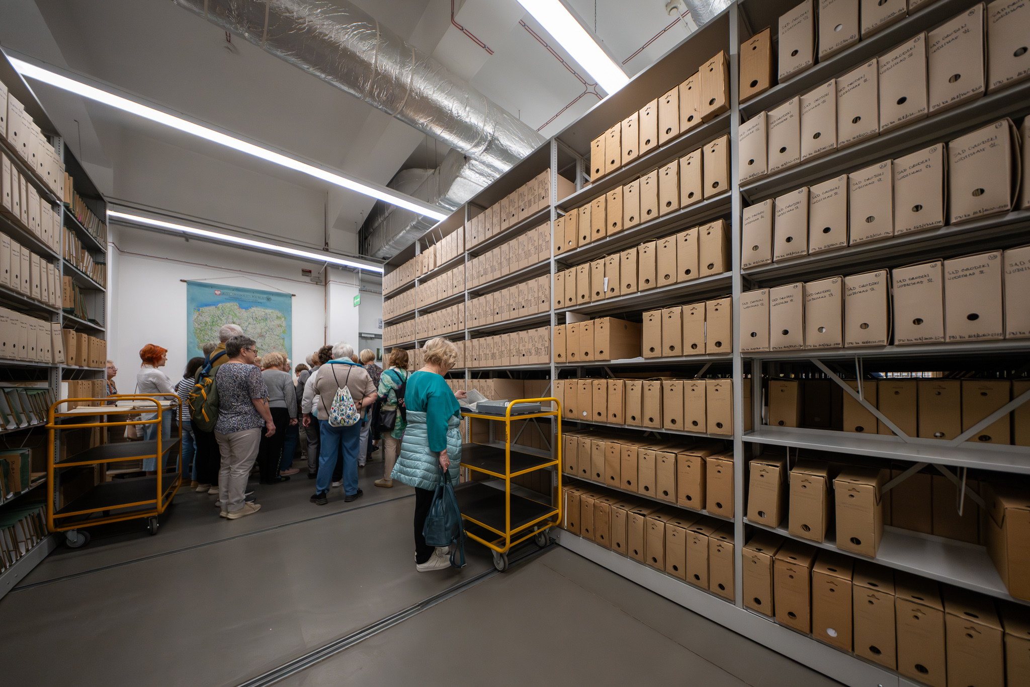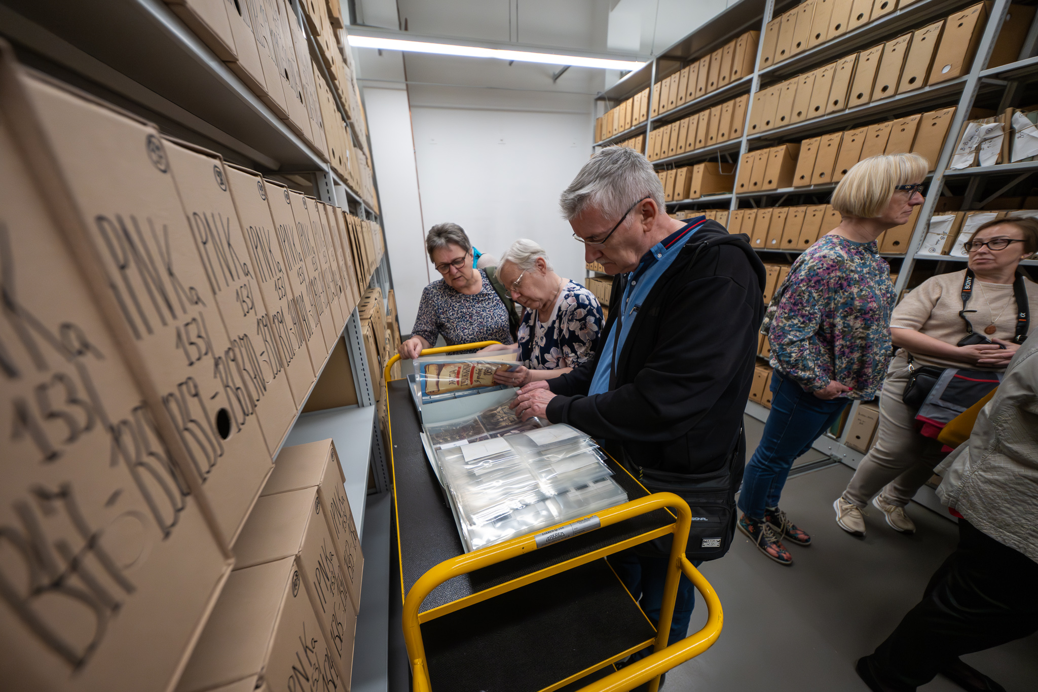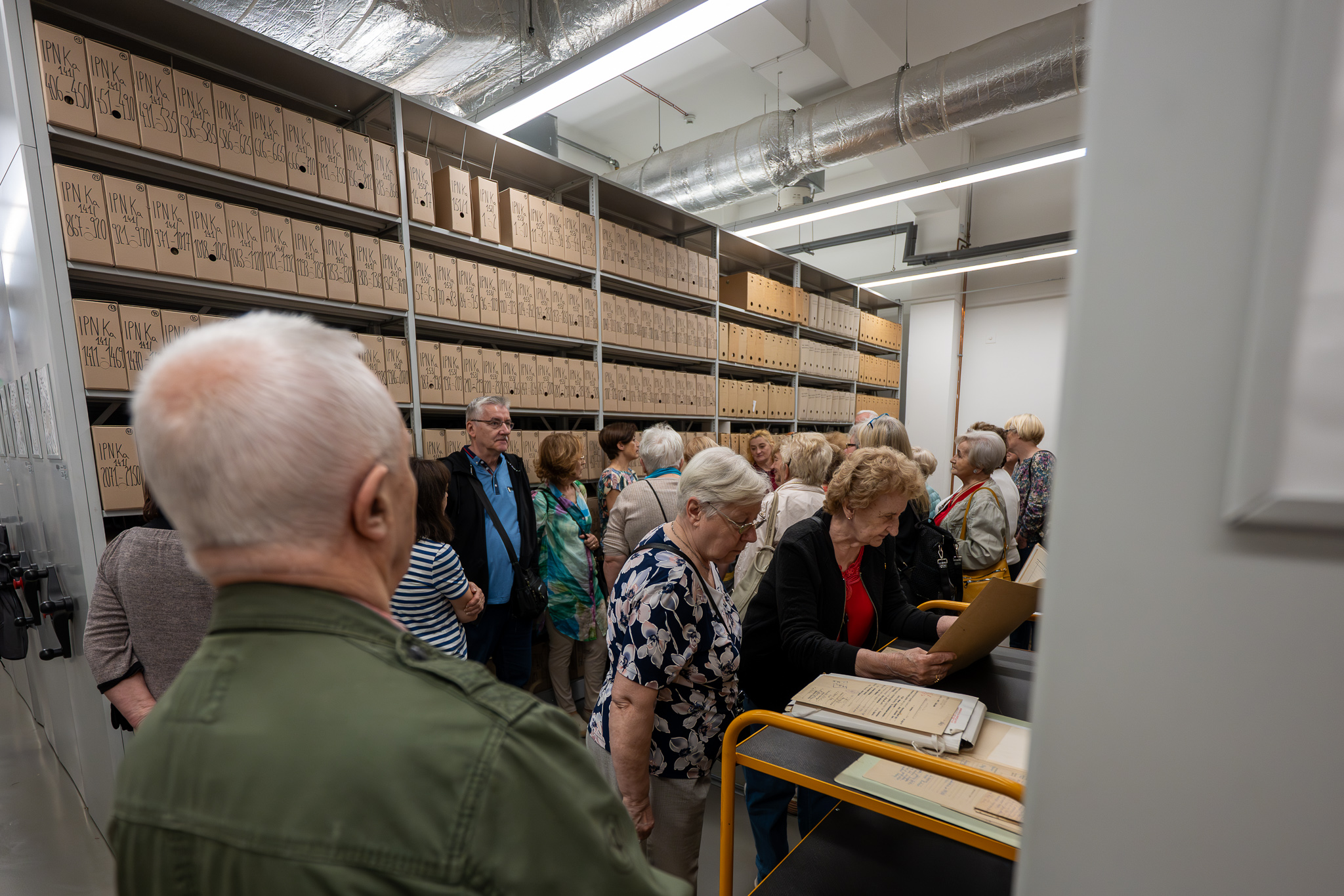 Goście zapoznali się z działalnością IPN i zwiedzili jeden z magazynów archiwalnych, gdzie zobaczyli wybrane dokumenty. W drugiej części spotkania dowiedzieli się o aktualnych projektach realizowanych przez OA (Archiwum Pełne Pamięci, straty.pl) oraz poznali możliwości i warunki korzystania z akt archiwalnych.