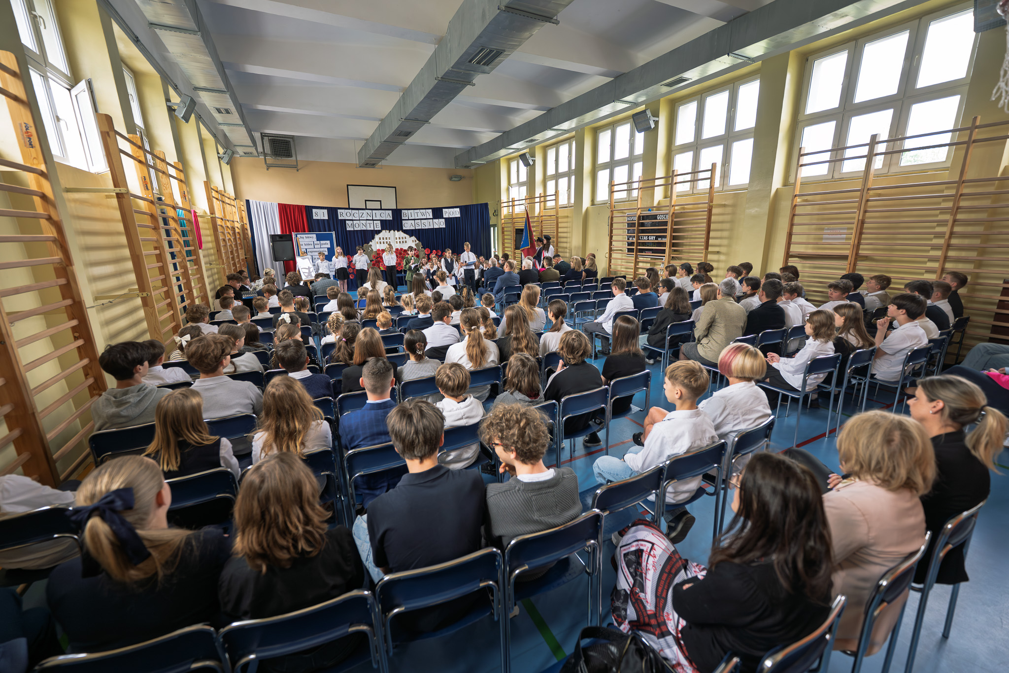 Uroczystość rozpoczęła się wprowadzeniem Sztandaru Szkoły, następnie głos zabrał dyrektor Dariusz Jureczko, po czym wybrzmiał pełen pięknych emocji program artystyczny, w którym wystąpili niezwykle utalentowani uczniowie przygotowani pod kierunkiem nauczycieli Szkoły. Nawiązująca do wydarzeń jakie rozgrywały się 81 lat temu pod Monte Cassino, oparta na pieśniach oraz wierszach stanowiących swoistą kronikę dramatycznych losów i chlubnego szlaku bojowego 2 Korpusu Polskiego akademia była prawdziwą lekcją patriotyzmu. Nad wyraz emocjonalne wykonanie poruszającej pod względem treści, jak i warstwy muzycznej pieśni „Czerwone maki na Monte Cassino” wywołało nieudawane wzruszenie.
