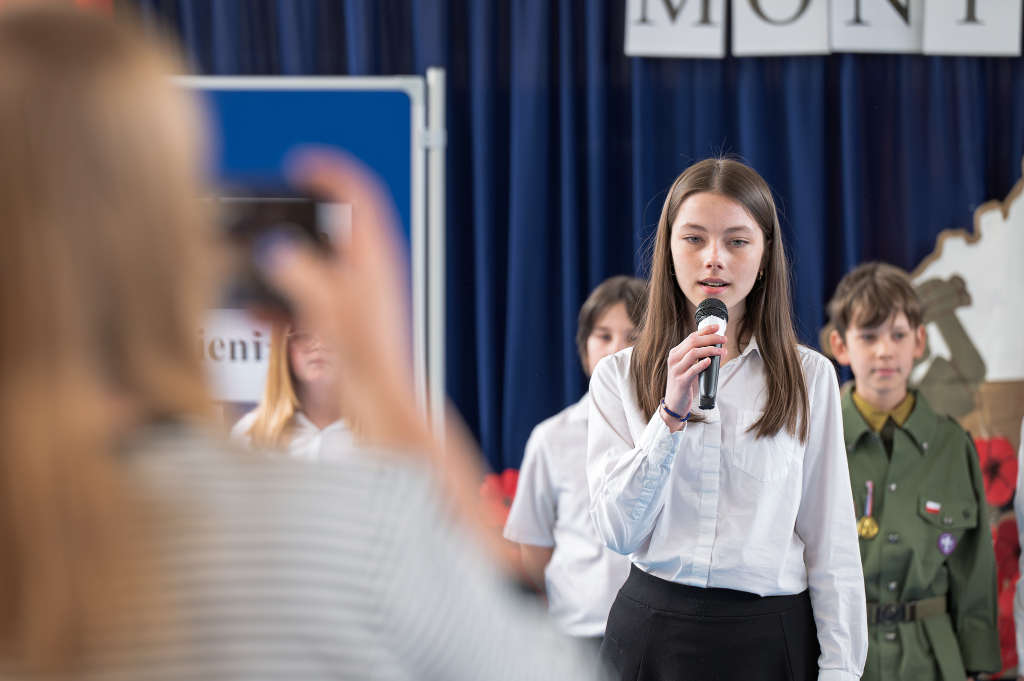 W wydarzeniu udział wzięli: wicekurator oświaty pan dr hab. Tomasz Huk, prof. UŚ, naczelnik Oddziałowego Biura Upamiętniania Walk i Męczeństwa Instytutu Pamięci Narodowej w Katowicach pan Jan Kwaśniewicz, radny Miasta Katowice pan Krzysztof Pieczyński, kierownik Referatu Organizacji, Wsparcia i Rozwoju Edukacji Urzędu Miasta Katowice pani Joanna Migdoł – Bałazy, reprezentujący 13 Śląską Brygadę Obrony Terytorialnej pan podporucznik Adrian Walczak, prezes Zarządu Okręgu Śląskiego Światowego Związku Żołnierzy Armii Krajowej pan Jan Musiał, krewni śp. Tadeusza Szumańskiego państwo Ewa i Jacek Szumańscy, pani Anna Binek-Zajda z Oddziałowego Biura Upamiętniania Walk i Męczeństwa Instytutu Pamięci Narodowej w Katowicach, przewodnicząca Rady Rodziców pani Agnieszka Słomska oraz społeczność szkolna.