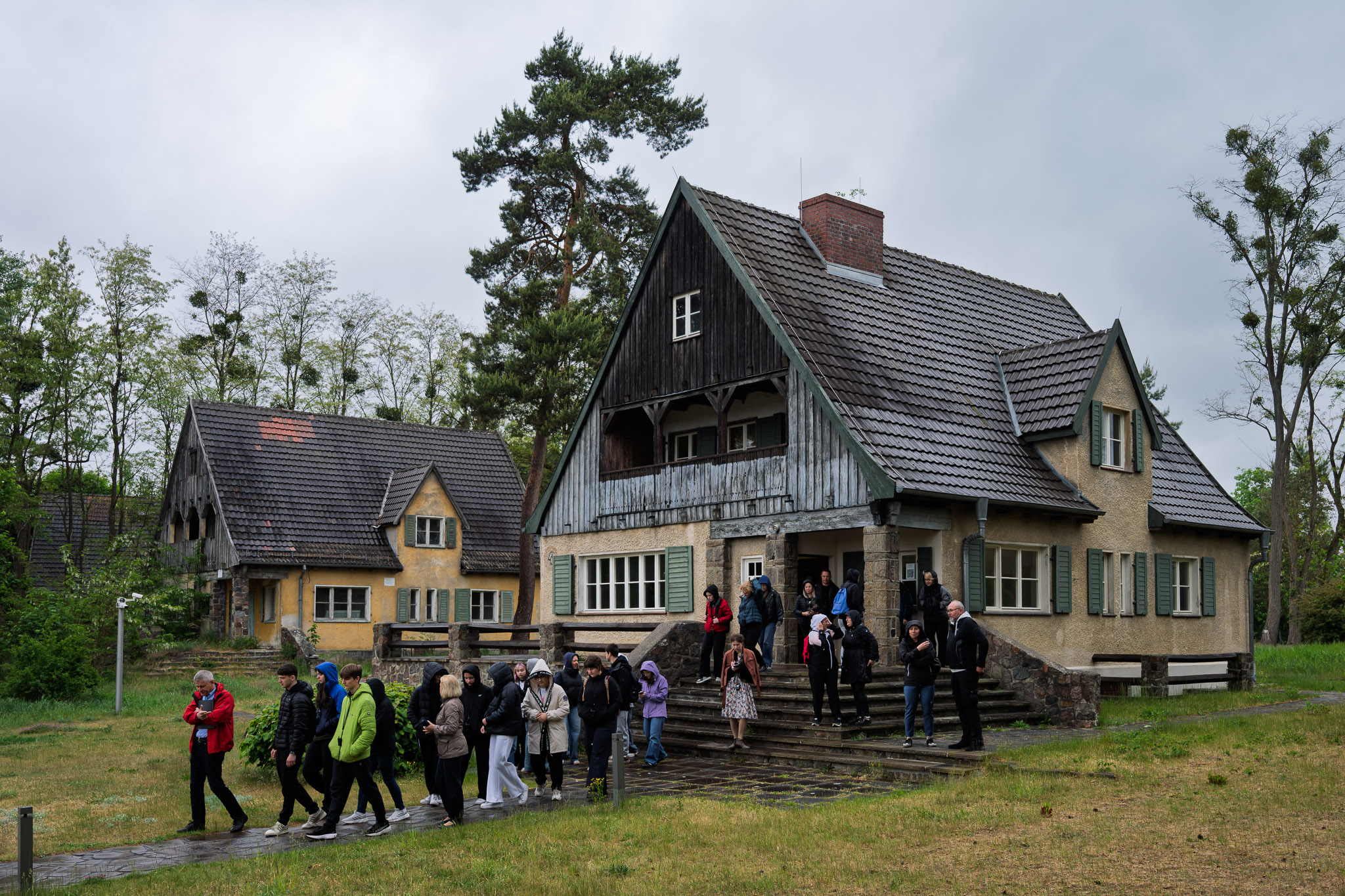 Następnie weszliśmy do domu komendantów obozu, należącego niegdyś do Ottona Koegela, a później Fritza Shurena. Budynek, niemal nietknięty przez czas, przytłaczał swoją aurą. Każdy krok po tych pomieszczeniach budził refleksję – jak w takim miejscu można było żyć, sprawując władzę nad cierpieniem innych? Wśród eksponatów, takich jak pierścień z trupią czaszką, czuć było mroczną obecność przeszłości. Z niewielkiego wzgórza, na którym stoi dom, rozciąga się widok na cały obóz – krajobraz, który kontrastuje z jego tragiczną historią, ściskał za serce.