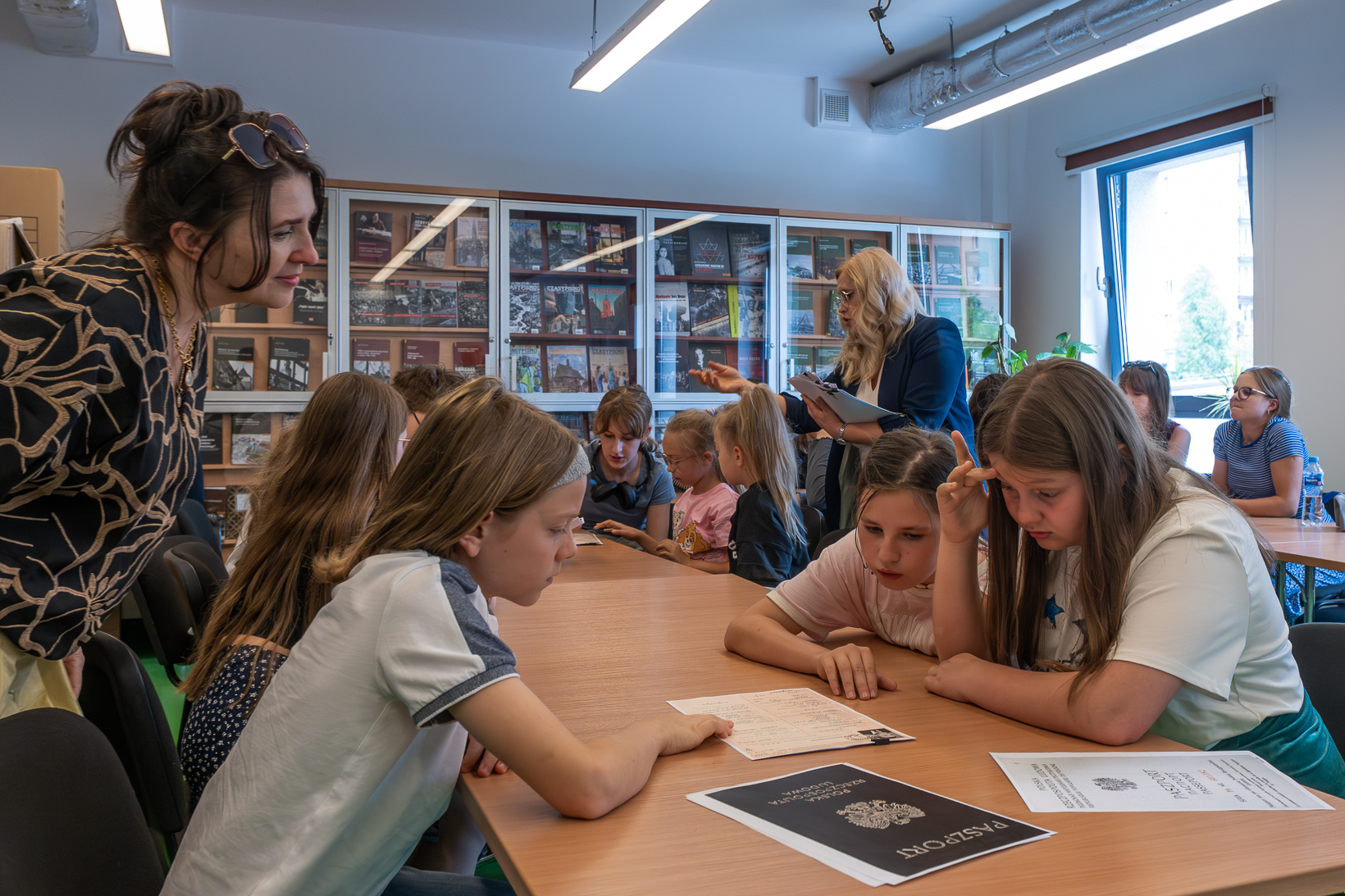 Uczestnikami była młodzież z Gminnego Ośrodka Kultury w Mierzęcicach w ramach warsztatów dziennikarskich prowadzonych przez panią Agnieszkę Zielińską. W pierwszej części zajęć dr Renata Dziechciarz Naczelnik Oddziałowego Archiwum poprowadziła zwiedzanie magazynu akt jawnych oraz zaprezentowała przykładowe dokumenty z zasobu archiwalnego. W warsztatowej części, którą poprowadziła Renata Skoczek z Oddziałowego Biura Edukacji Narodowej, adepci dziennikarstwa porównali paszporty z czasów PRL ze współczesnymi, a następnie przeanalizowali przykładowe dokumenty dotyczące wyjazdów zagranicznych w latach 70. i 80. XX wieku znajdujące się w zbiorach Oddziałowego Archiwum IPN w Katowicach. Na zakończenie każda grupa omówiła analizowane kwestionariusze, a prowadząca zajęcia odpowiedziała na liczne pytania uczestników.