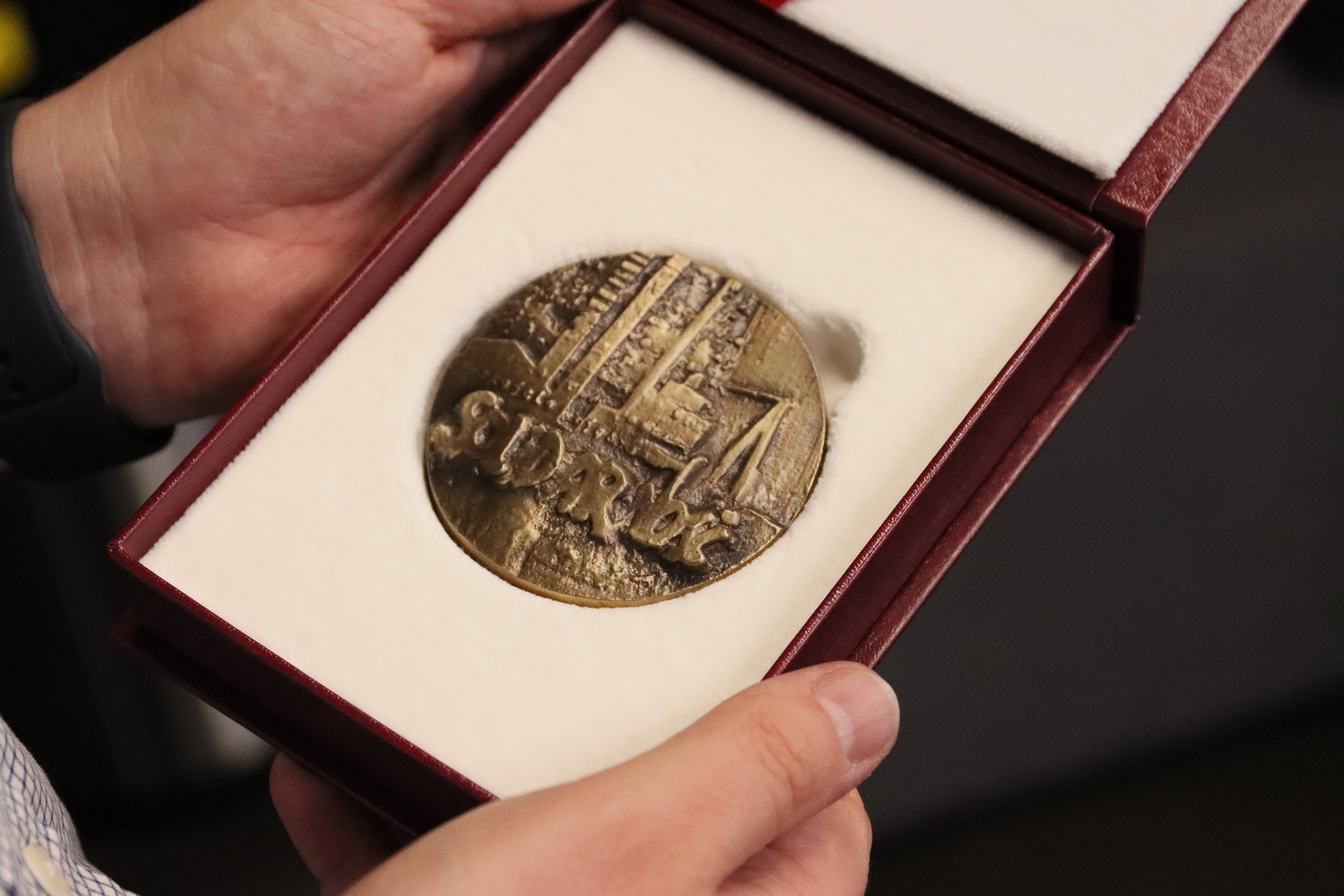 folderze dołączonym do medalu z okazji 45. rocznicy strajków „Solidarności”.