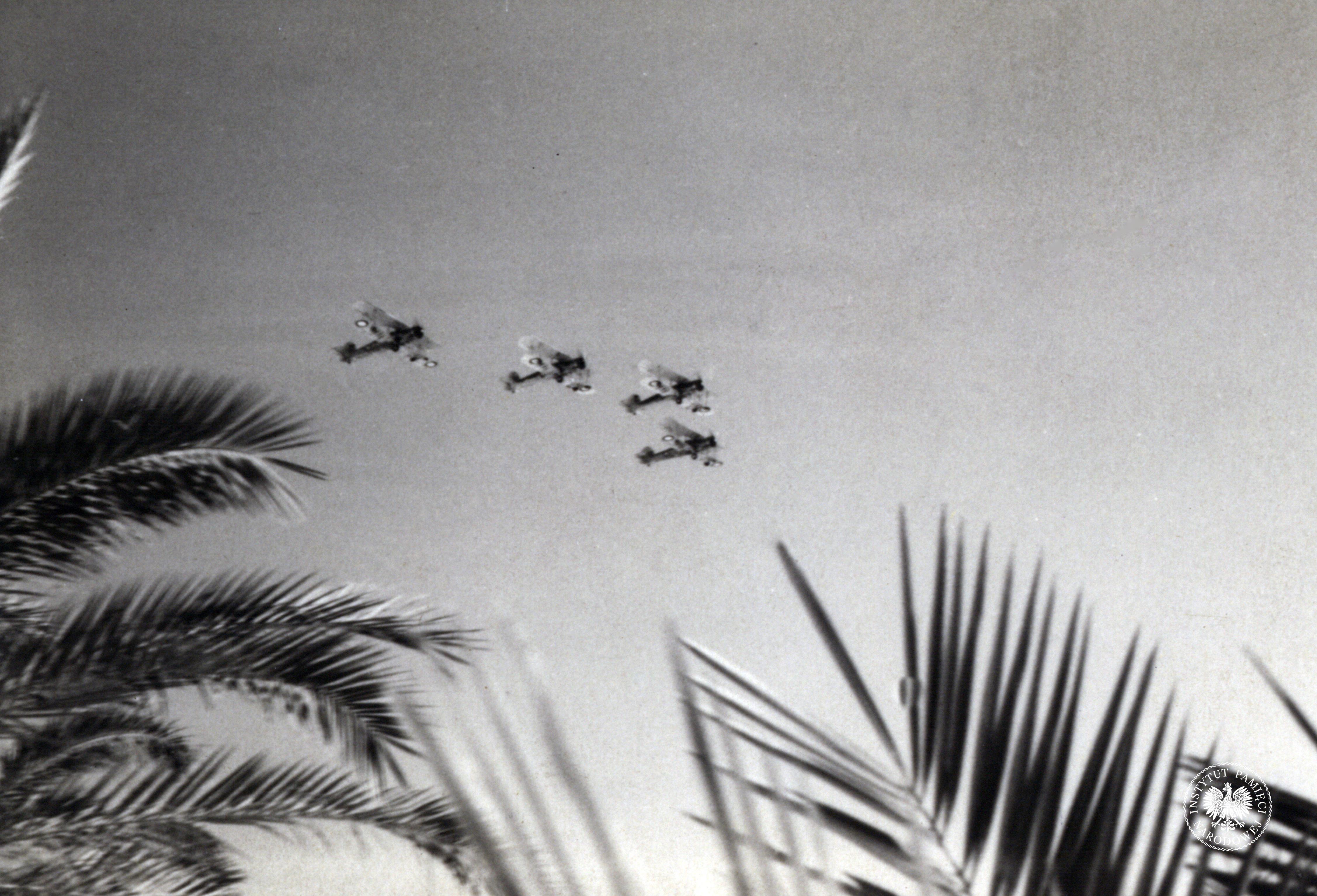 Brytyjskie samoloty dwupłatowe nad Aleksandrią w grudniu 1940 r. Na rewersie odręczna notatka: „R.A.F na spacerze” (IPN Ka 454/107, t. 1) -
