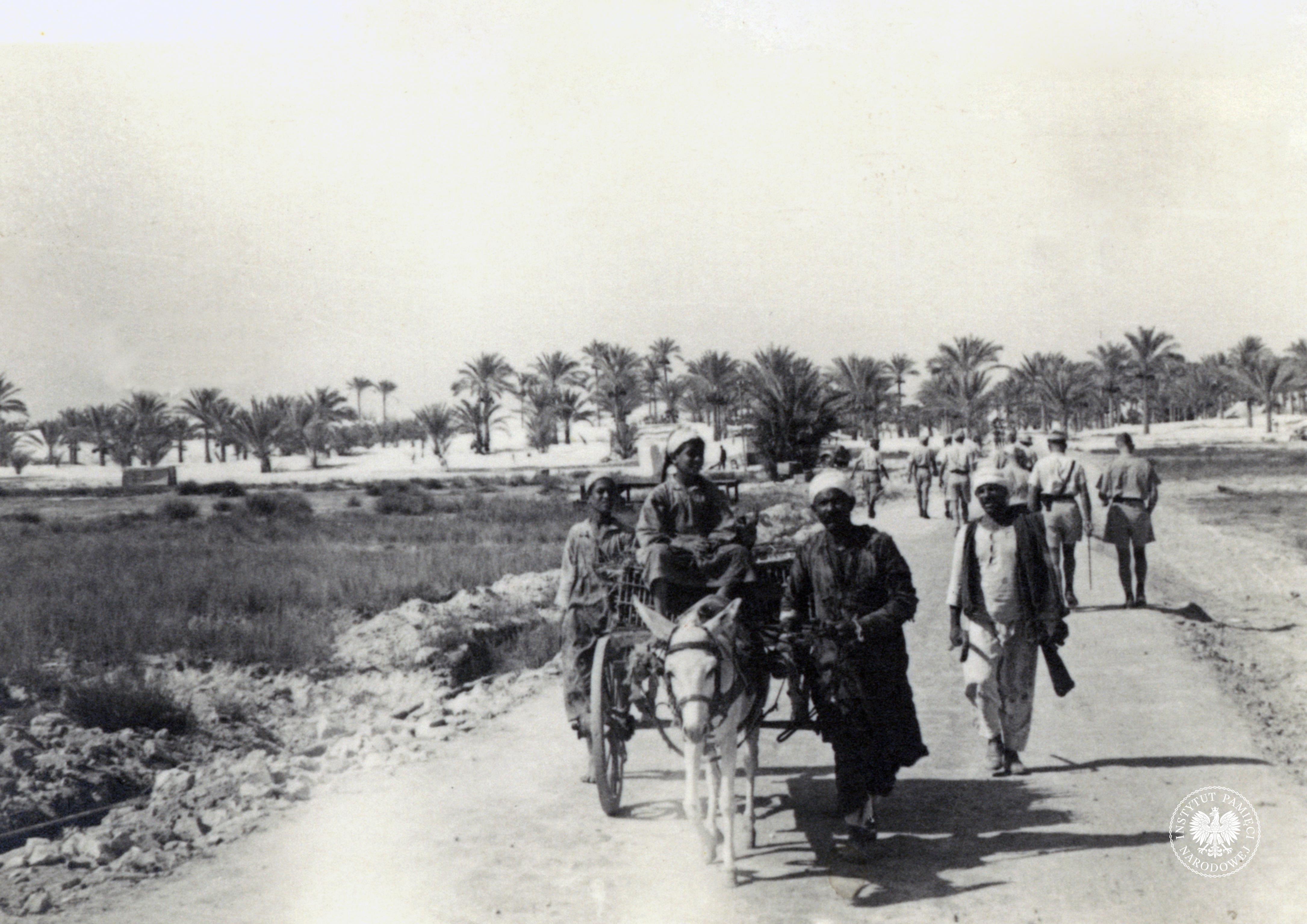 Jan Chrzanowski (drugi od lewej strony) i inni żołnierze w drodze do obozu dla rekonwalescentów – żołnierzy alianckich w Netanji, luty 1941 r. (IPN Ka 454/79, t. 3) -