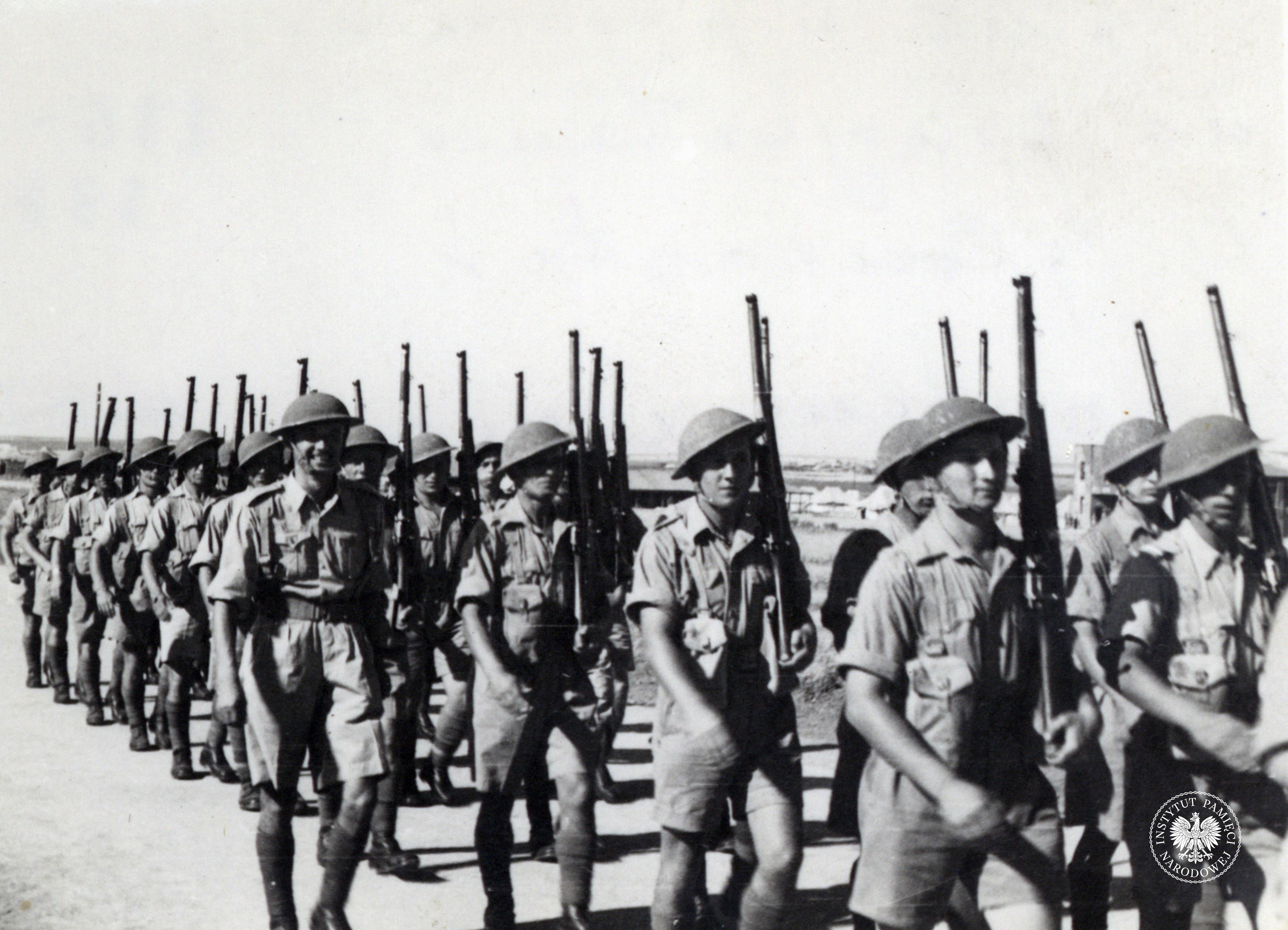 Żołnierze Czwartej Brygady ze składu PSZ na Zachodzie przed defiladą w Al-Latrun (Palestyna/Izrael) w dniu 15 sierpnia 1940 r. (IPN Ka 454/107, t. 1) -