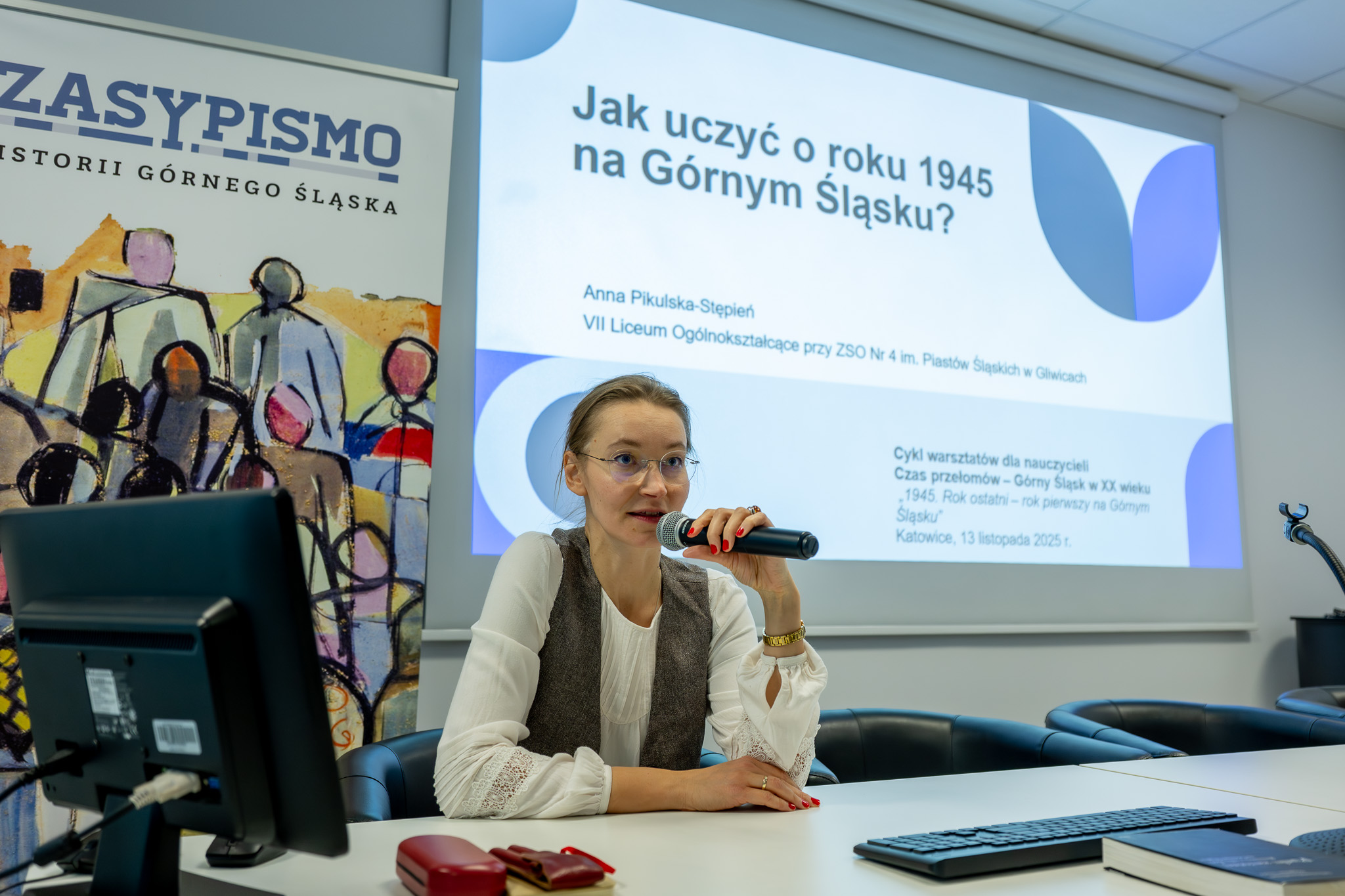 Warsztaty odbyły się w ramach czteroczęściowego cyklu „Czas przełomów – Górny Śląsk w XX wieku”. Jego kolejna odsłona, poświęcona wydarzeniom 1956 r. na Górnym Śląsku, będzie miała miejsce 21 stycznia 2026 r. Zapraszamy nauczycieli udziału w warsztatach.