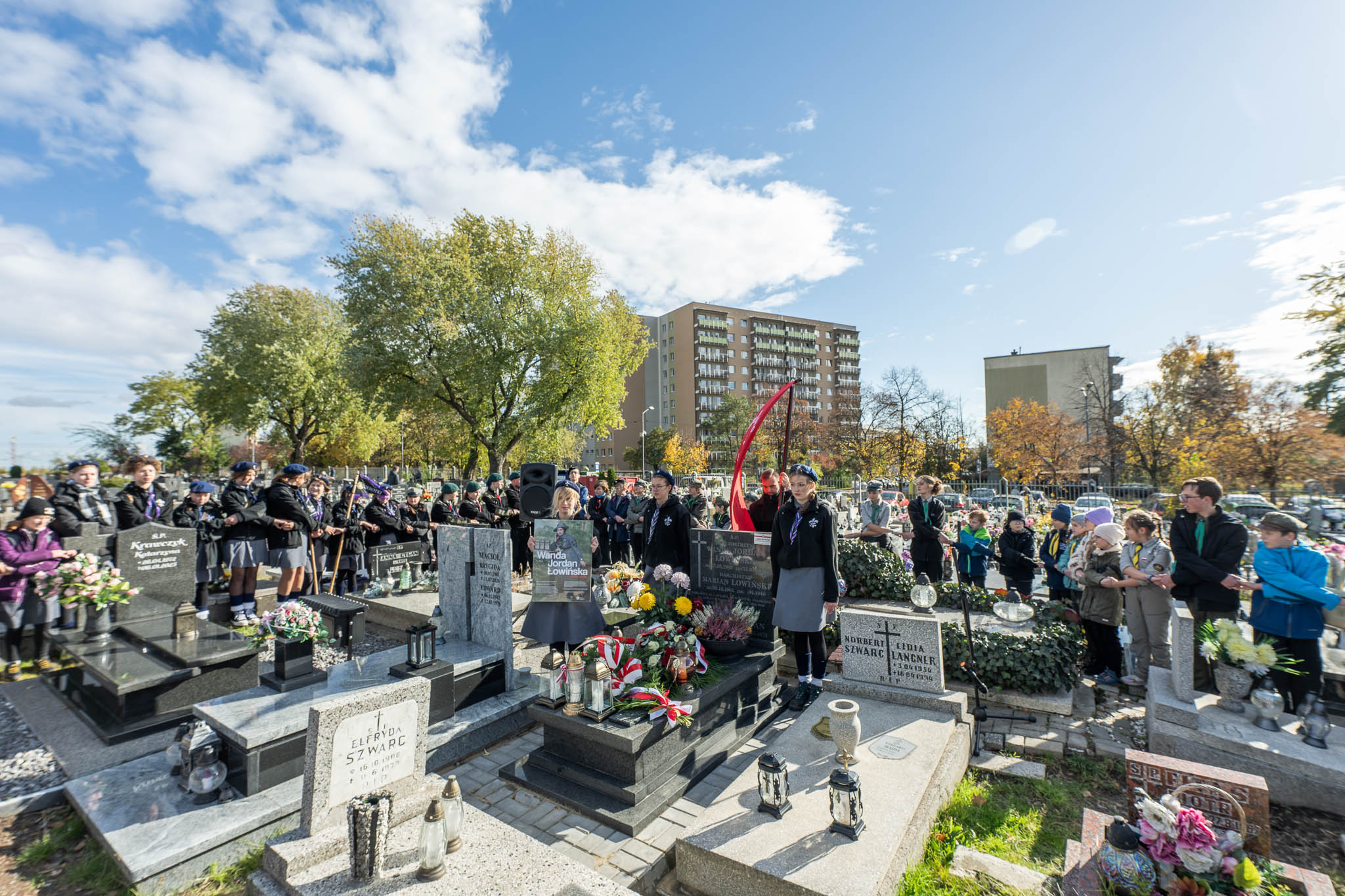 Uroczystość oznaczenia znakiem pamięci „Tobie Polsko” grobu uczestniczki III powstania śląskiego hm. Wandy Jordan-Łowińskiej – Katowice. Fot.: IPN Krzysztof Łojko