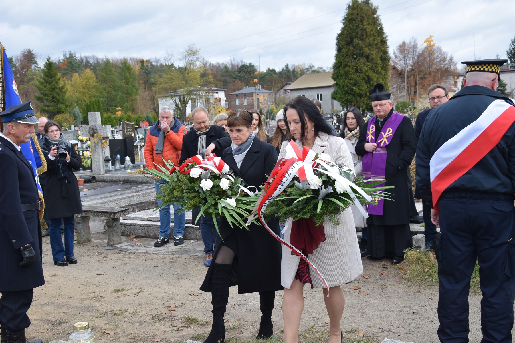W wydarzeniu udział wzięli: Teresa Mucha-Popiel – Starosta Zawierciański, Maria Milejska – Wicestarosta Zawierciański, Anna Nemś – Prezydent Miasta Zawiercie, Jan Kwaśniewicz – Naczelnik Oddziałowego Biura Upamiętniania Walk i Męczeństwa IPN w Katowicach, st. bryg. Artur Łągiewka – Komendant Powiatowy Państwowej Straży Pożarnej w Zawierciu, ks. prał. Jan Niziołek – proboszcz parafii pw. św. Apostołów Piotra i Pawła w Zawierciu, ks. Jacek Reczek – proboszcz parafii pw. NMP Królowej Polski w Zawierciu, przedstawiciele Ochotniczej Straży Pożarnej, służb mundurowych oraz poczty sztandarowe. W uroczystości wzięła udział również młodzież szkolna wraz z nauczycielami i dyrektorami z Zespołu Szkół im. gen Józefa Bema w Zawierciu, Liceum Ogólnokształcącego im. Stefana Żeromskiego w Zawierciu, Zespołu Szkół im. Hugona Kołłątaja w Zawierciu, Zespołu Szkół im. Stanisława Staszica w Zawierciu, Zespołu Szkół Ekonomicznych w Zawierciu oraz Szkoły Podstawowej nr 2 im. Stanisława Szymańskiego w Zawierciu.