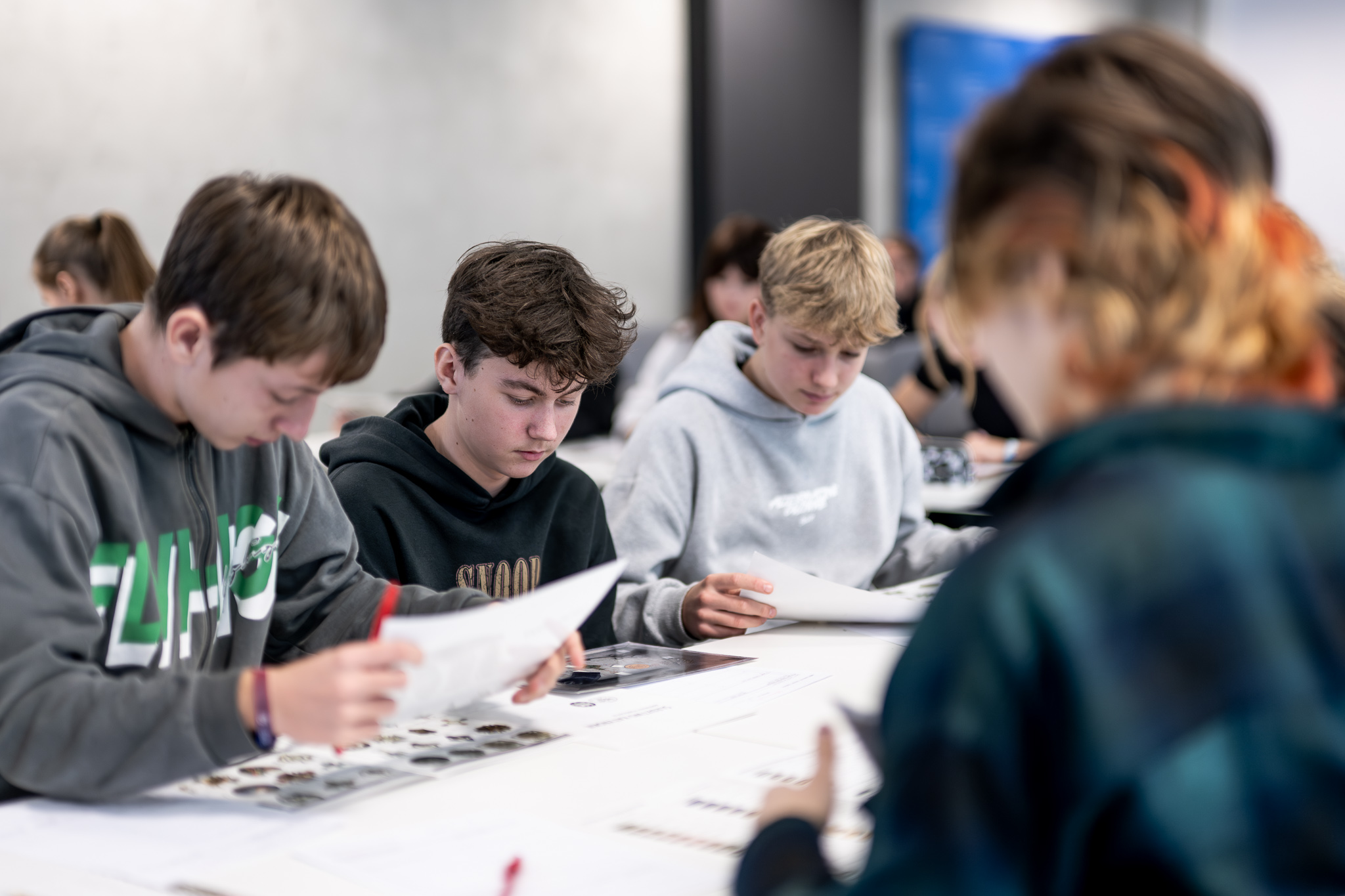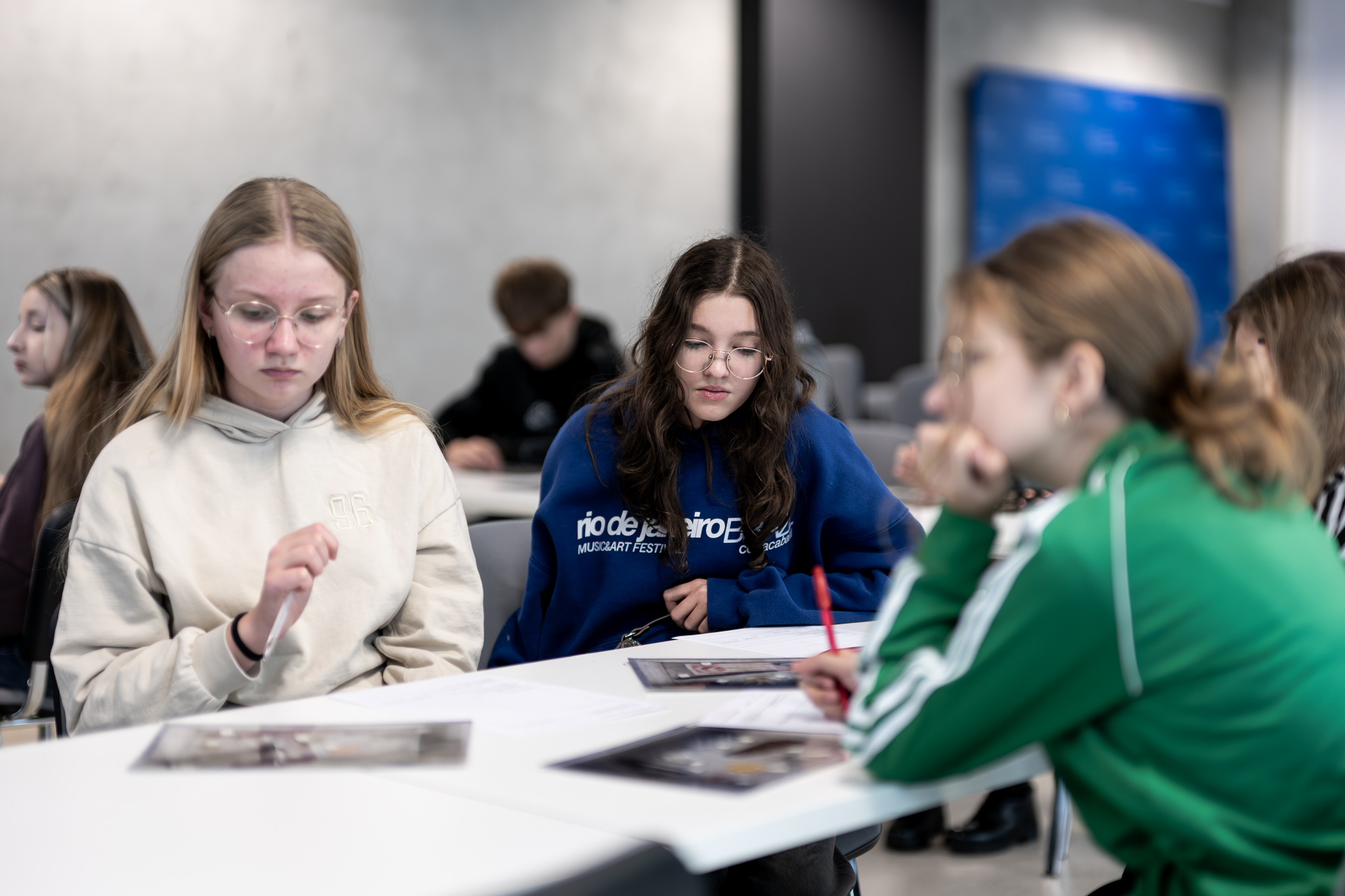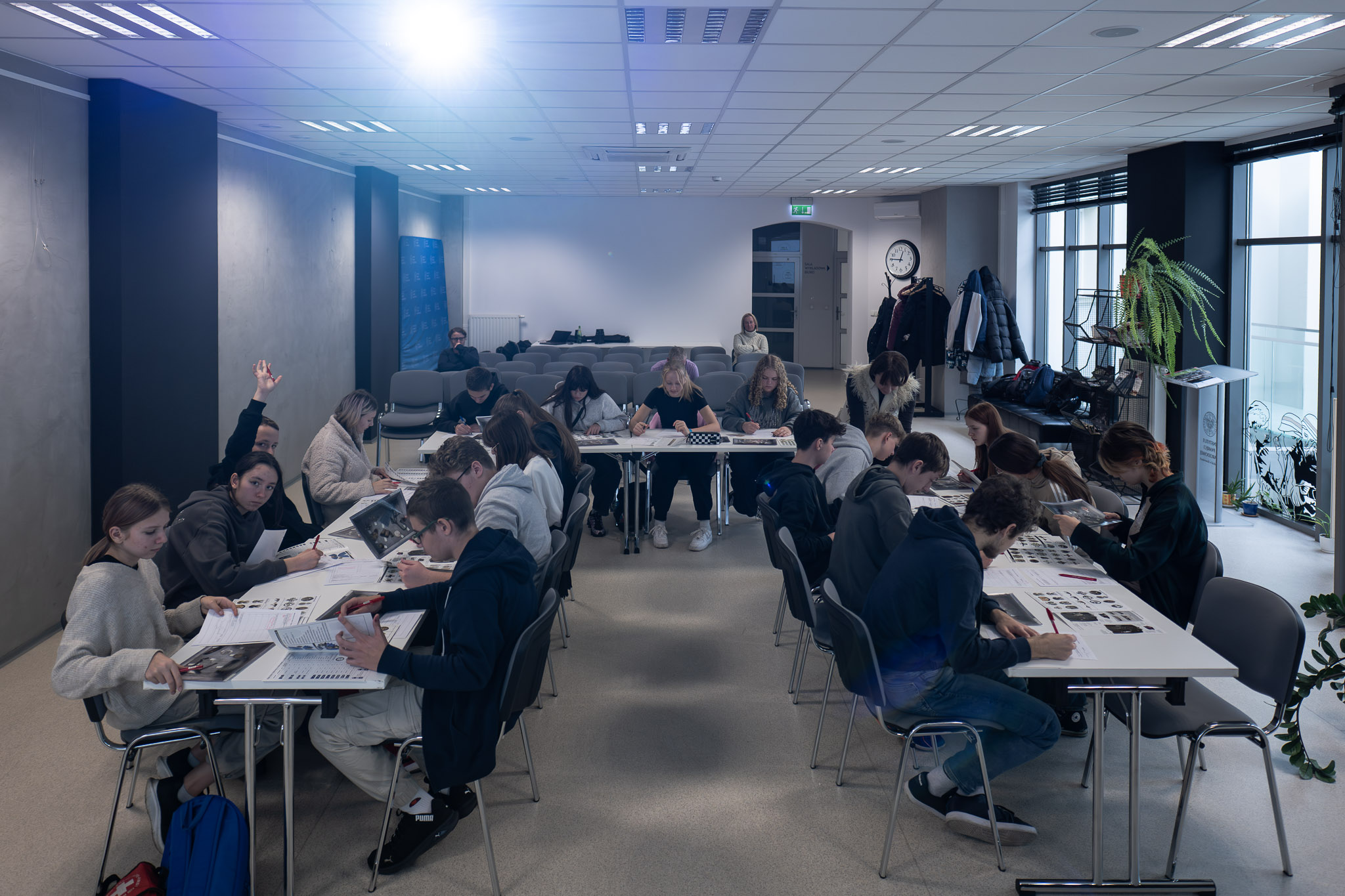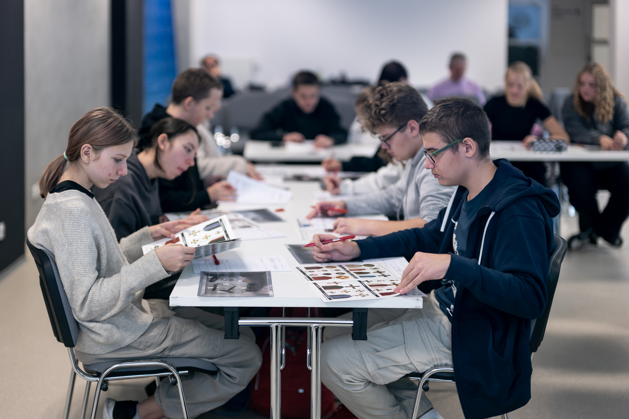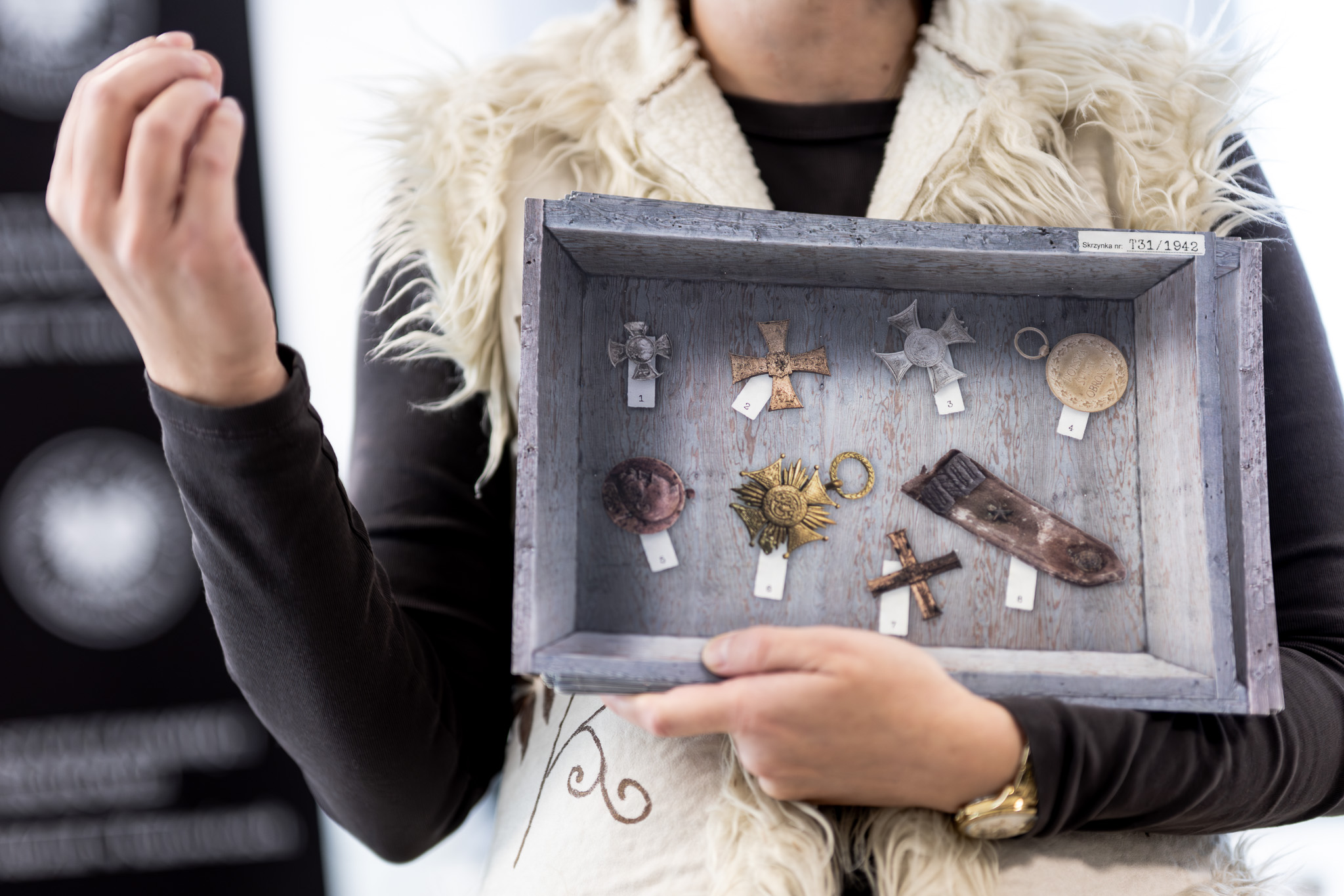 Druga część warsztatów miała charakter aktywizujący – uczniowie wzięli udział w projekcie edukacyjnym. Pracując w grupach, uczestnicy podejmowali próbę identyfikacji ofiar Zbrodni Katyńskiej na podstawie przygotowanych materiałów: kart identyfikacyjnych zawierających zdjęcia odznak wojskowych, dystynkcji, medali oraz przedmiotów osobistych.