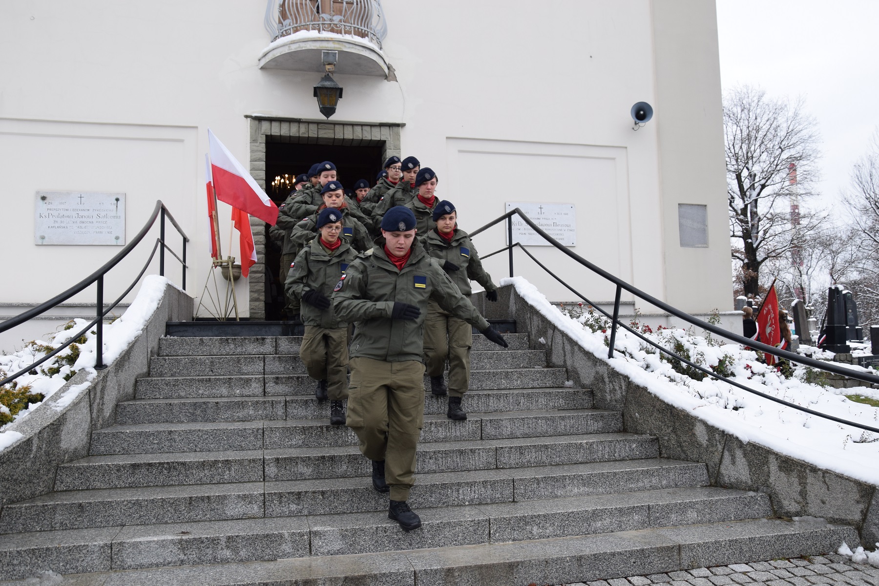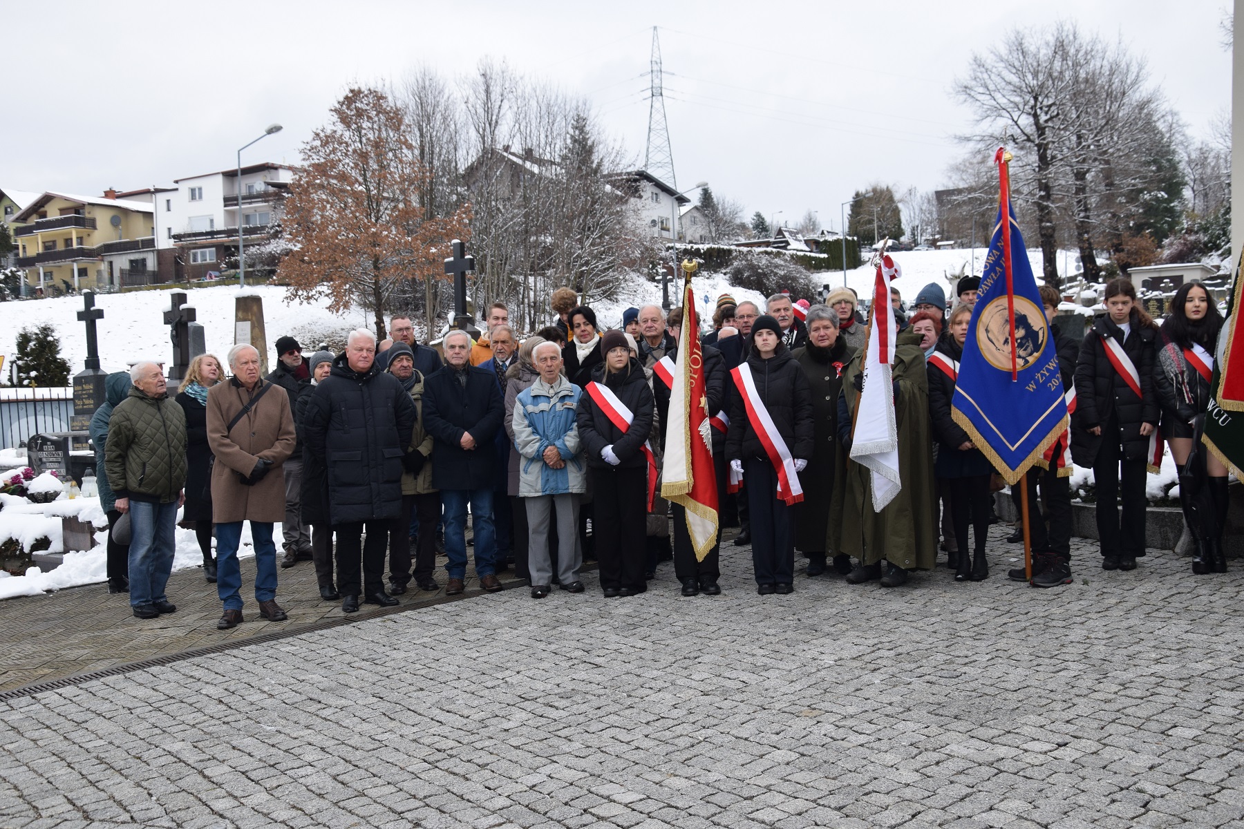 Po zakończeniu pierwszej części uroczystości w kościele wszyscy zebrani przeszli na sąsiadujący cmentarz. Dalszą część prowadził Patryk Żyrek, archiwista parafii pw. Przemienienia Pańskiego. Po wspólnym odśpiewaniu hymnu polskiego nastąpiło odsłonięcie grobu sierż. Józefa Kaisera, wpisanego do ewidencji grobów weteranów walk o wolność i niepodległość Polski, niedawno wyremontowanego. Po złożeniu kwiatów i zapaleniu zniczy zebrani przeszli do nieodległego grobu ppłk. W. Steblika. W związku z niedawnym wpisaniem i tej mogiły do ewidencji grobów weteranów walk o wolności i niepodległość Polski został on oznakowany tabliczką z napisem „Grób weterana…”. I tu uczestniczący w uroczystości złożyli kwiaty oraz zapalili znicze. Następnie wszyscy przeszli na plac przed kościołem, gdzie wspólnie odśpiewano pieśń Boże, coś Polskę, po czym wykonano zbiorowe zdjęcie uczestników.