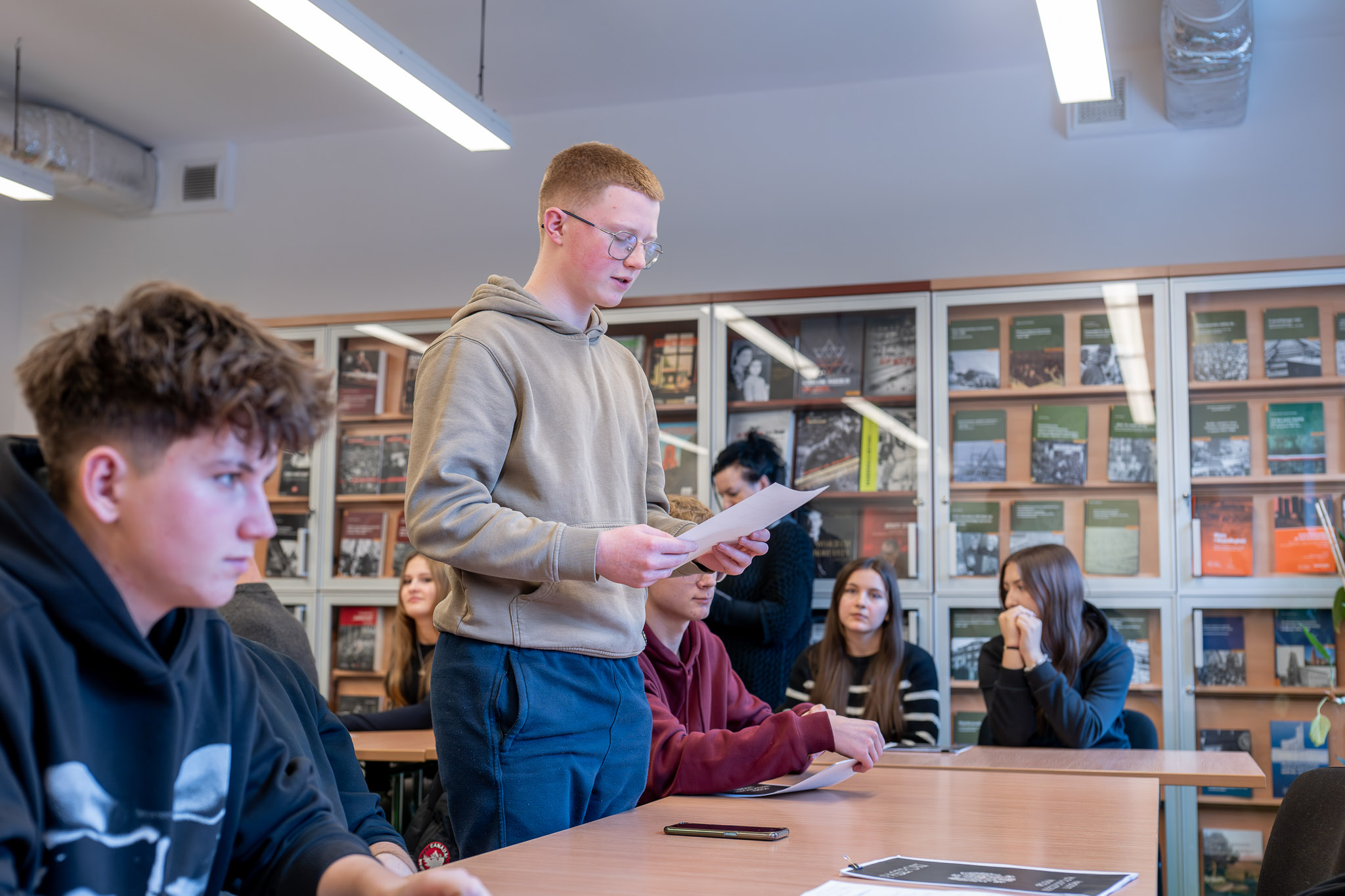 W warsztatach wzięli udział uczniowie Technikum z Zespołu Szkół Ekonomicznych w Bielsku-Białej. W pierwszej części zajęć Tomasz Marszałek kustosz z Oddziałowego Archiwum IPN w Katowicach poprowadził zwiedzanie magazynu akt jawnych, przedstawił zadania i działalność Archiwum oraz zaprezentował przykładowe dokumenty z zasobu archiwalnego. W warsztatowej części, którą poprowadziła Renata Skoczek z Oddziałowego Biura Edukacji Narodowej, młodzież porównała paszporty z czasów PRL ze współczesnymi, a następnie przeanalizowała wybrane dokumenty dotyczące wyjazdów zagranicznych w latach 70. i 80. XX wieku znajdujące się w zasobie Oddziałowego Archiwum IPN w Katowicach. Na zakończenie pracy zespołowej każda grupa omówiła konkretny przypadek osoby ubiegającej się o wyjazd zagraniczny na przykładzie analizowanego wniosku paszportowego.