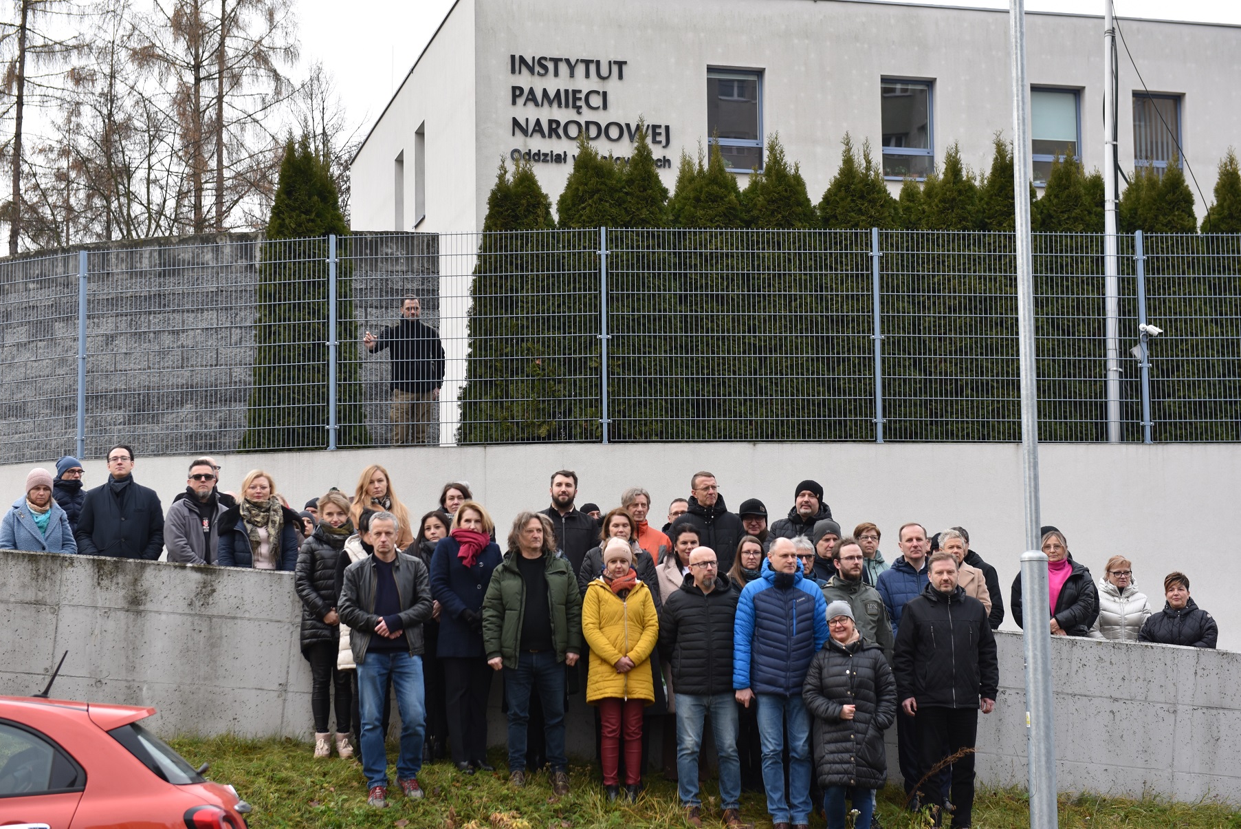 Katowicki oddział IPN włączył się do akcji #ZatrzymaćMiasto zorganizowanej przez Śląskie Centrum Wolności i Solidarności im. Dziewięciu Górników z „Wujka” upmiętniającej zamordowanych podczas pacyfikacji strajku w 1981 r. Pracownicy Instytutu w 44. rocznicę tej zbrodni wyszli przed budynek 16 grudnia 2025 r. o godz. 11.00, by w ciszy uczcić ofiary totalitarnego reżimu komunistycznego.