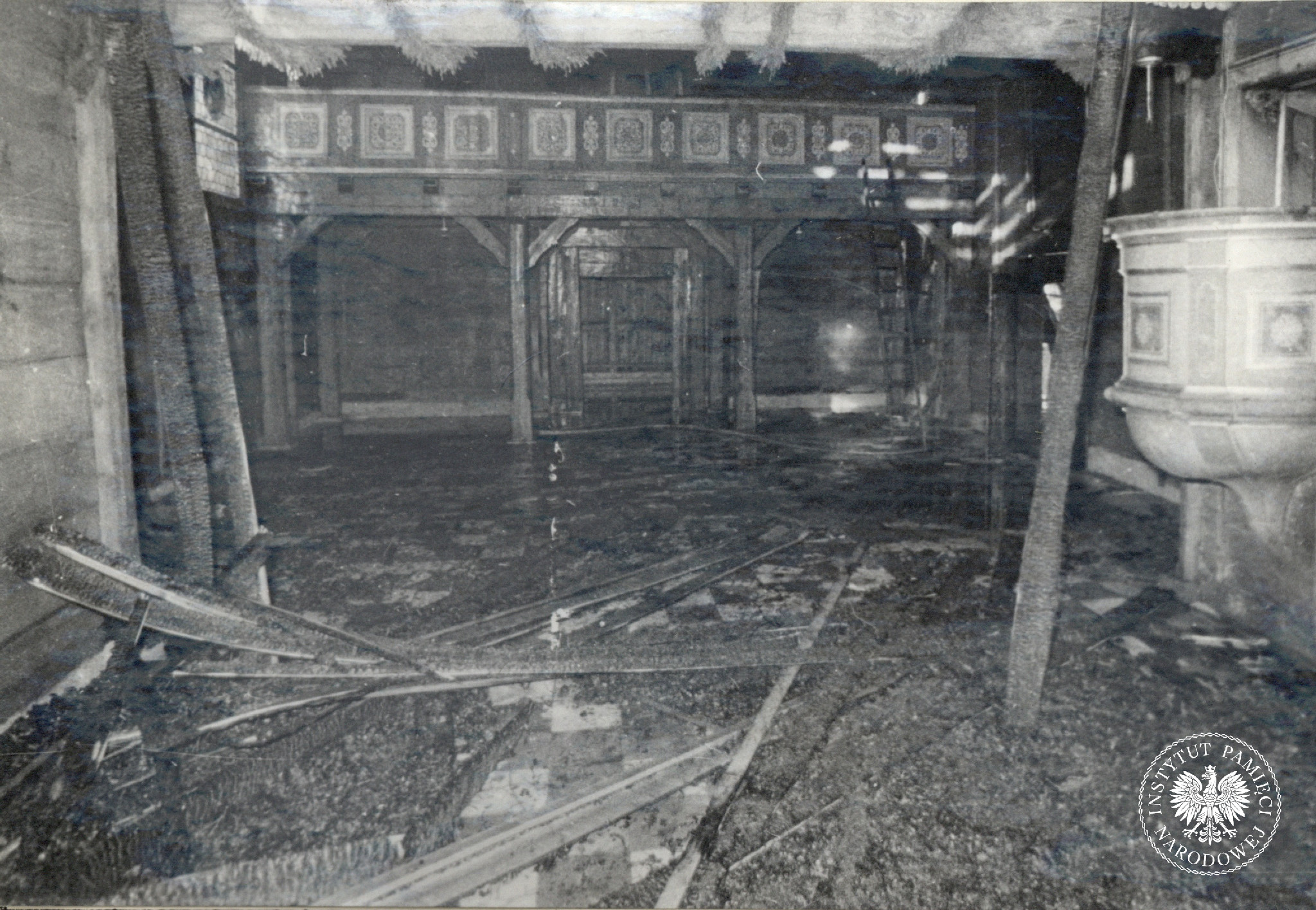 Dochodzenie wykazało, że ogień został podłożony w okolicy schodów prowadzących na chór: zebrane z grobów na przykościelnym cmentarzu wieńce (napuszczone już parafiną) zostały tam właśnie od zewnątrz (przy użyciu drabiny) umieszczone i podpalone. Od nich szybko zajęła się boczna ściana i dach – a wszystko działo się na około 10 minut przed zauważeniem ognia przez pierwszego świadka, tak więc pożar został zauważony bardzo prędko, ale i prędko się rozprzestrzenił.