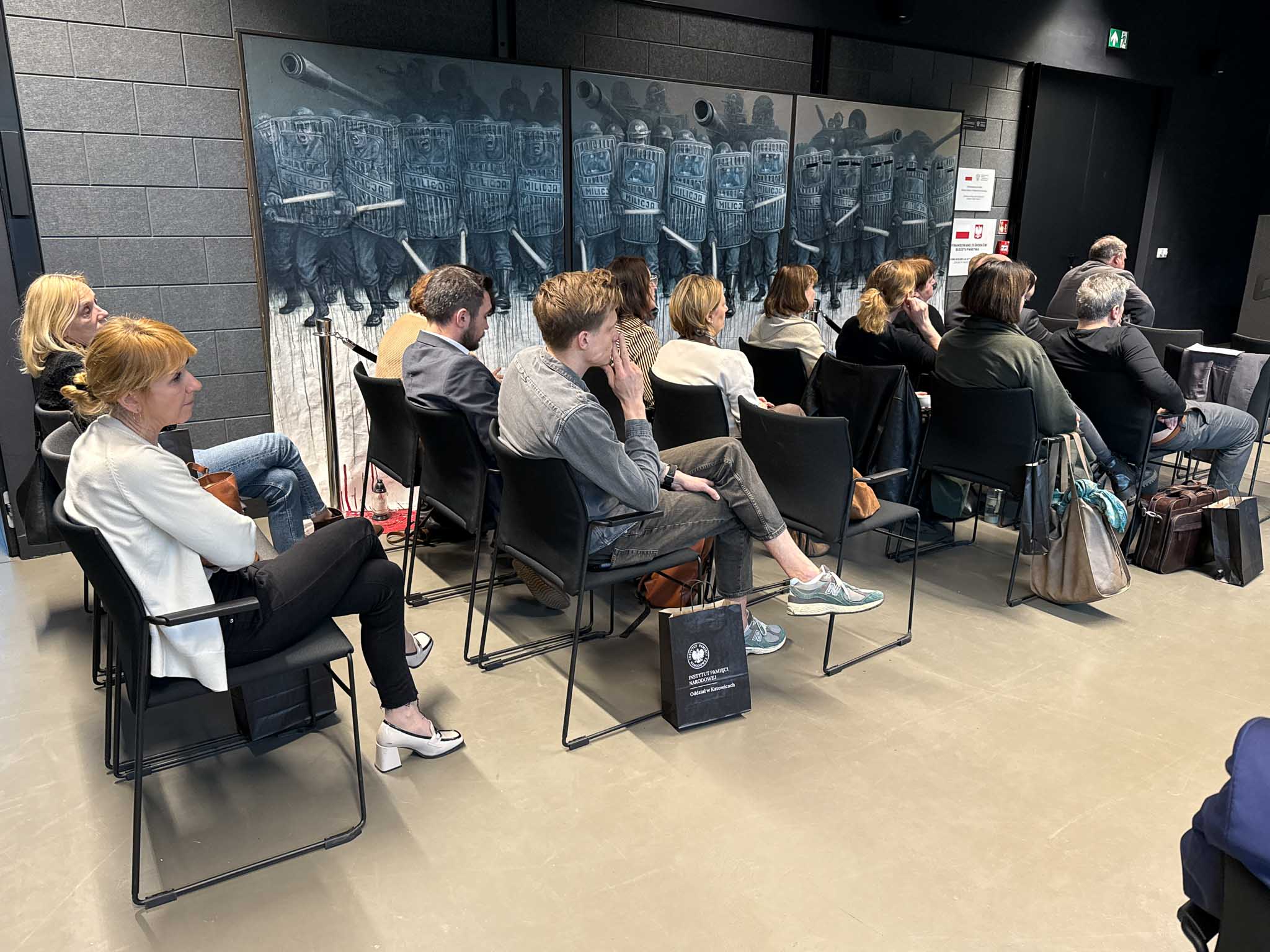 Drugą część spotkania rozpoczęło wystąpienie Karola Chwastka ze Śląskiego Centrum Wolności i Solidarności, który przedstawił akcję „Ambasadorowie Pamięci” oraz omówił projekty edukacyjne realizowane przez tę instytucję. Uczestnicy warsztatów mieli również możliwość zwiedzenia wystawy stałej Śląskiego Centrum Wolności i Solidarności oraz obejrzenia filmu „Życiorys z bliznami”.
