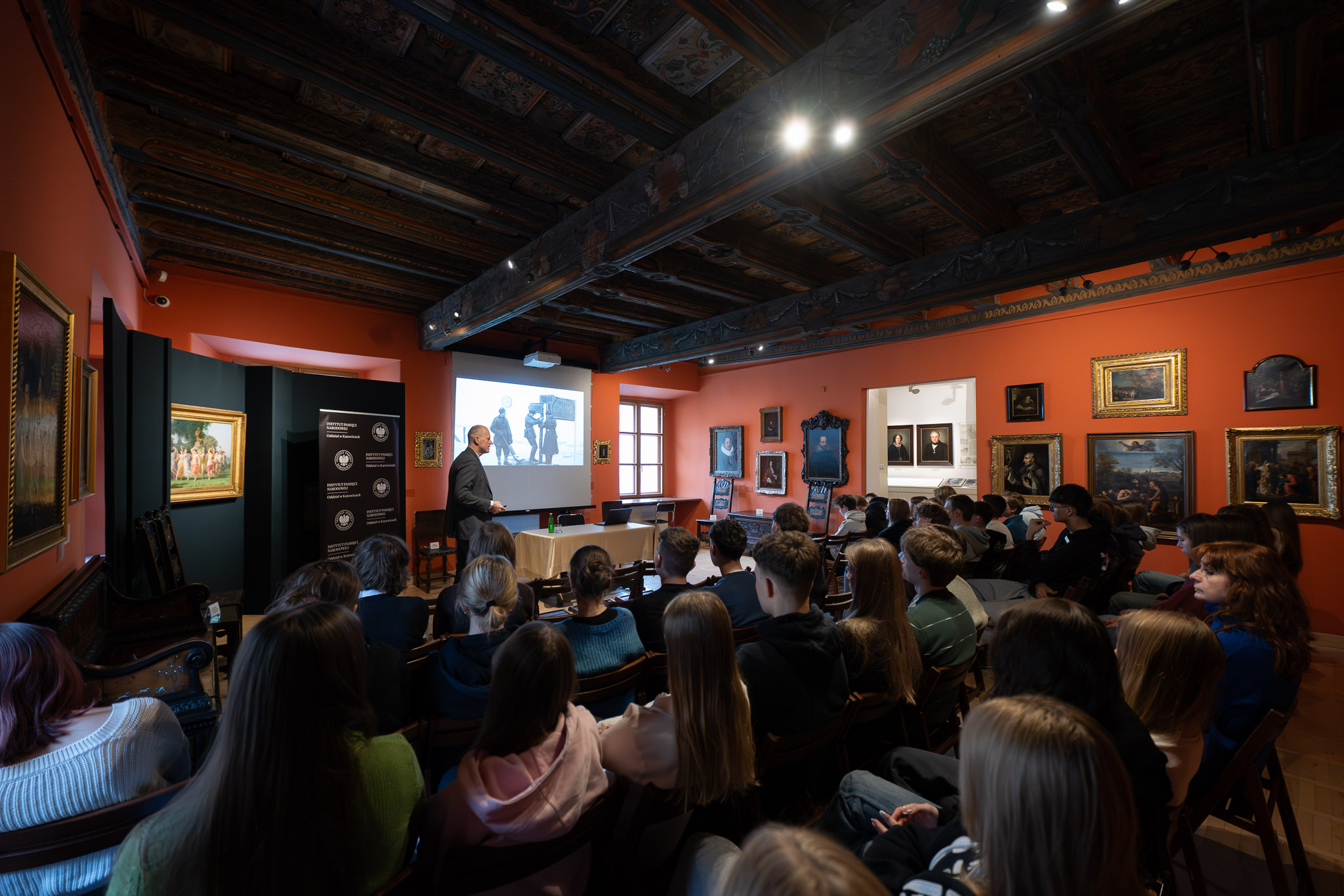 Zgromadzoną młodzież szkolną przywitała Beata Kiszel, Dyrektor Muzeum w Tarnowskich Górach – podkreślając, że o sprawach trudnych trzeba mówić jasno i odpowiedzialnie, zwłaszcza w miejscu, które uczy wrażliwości na przeszłość.