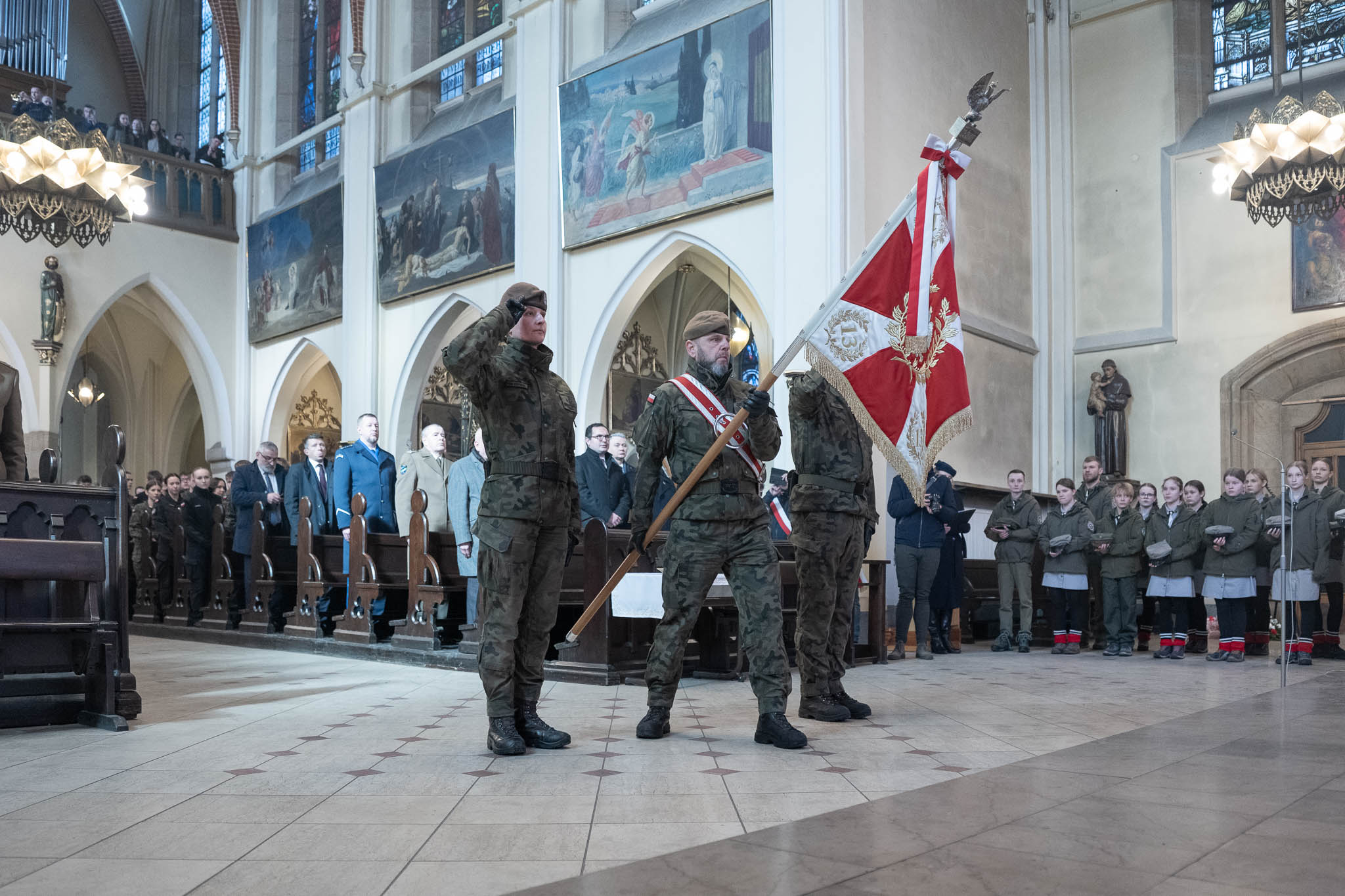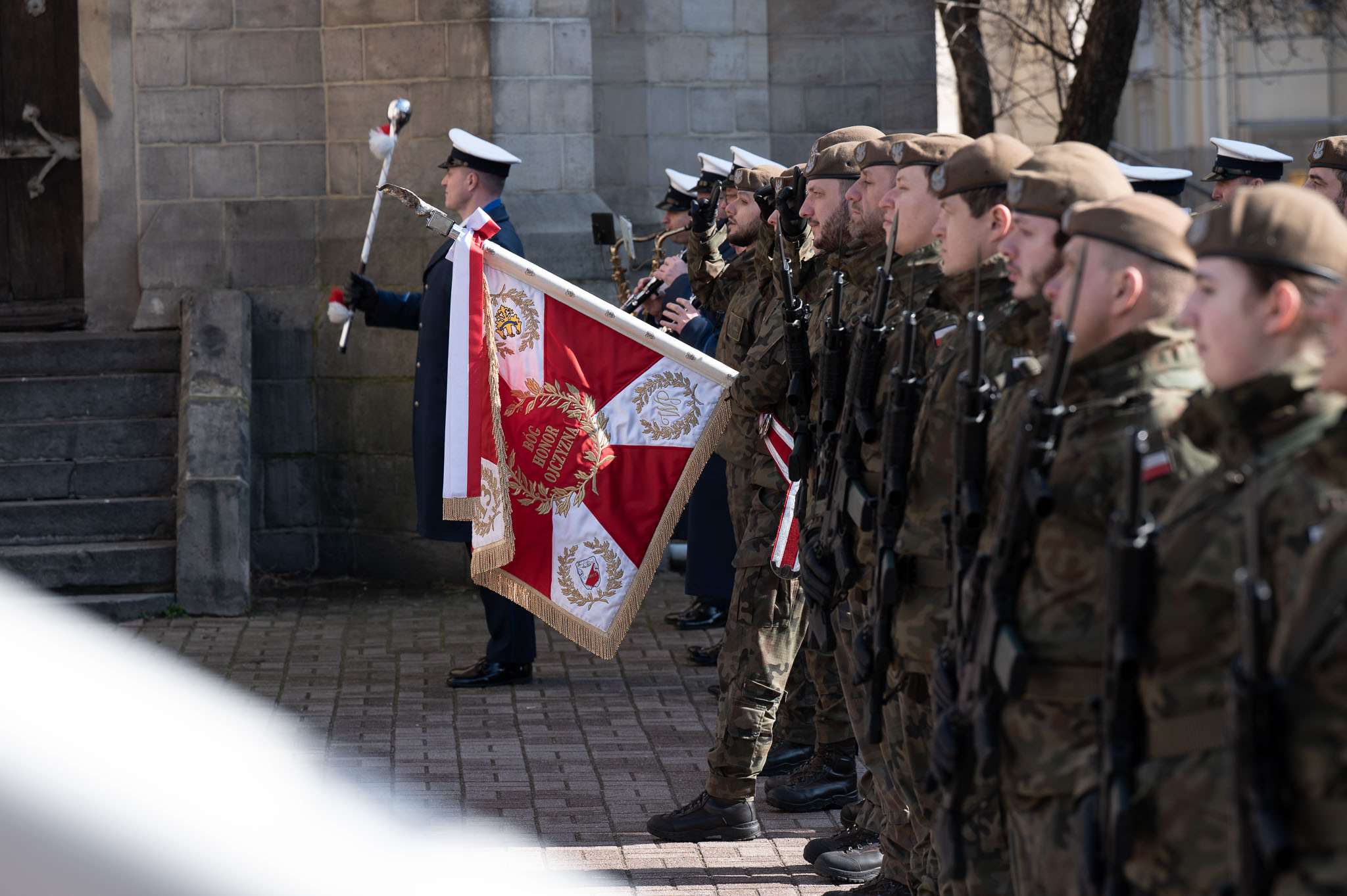 Bóg, honor i ojczyzna. - Nie muszę wam mówić, że najczęstsze przedmioty znalezione przy odnalezionych po wielu latach żołnierzach niezłomnych to były często przedmioty religijne. To był różaniec, to był ryngraf Matki Bożej. Czy tak, jak rotmistrz Pilecki, który szedł na skazanie i na zamordowanie i mówił do żony, aby nie przestała czytać "O naśladowaniu Chrystusa", bo gdyby nie Pan Bóg, nie miałby siły być niezłomnym. Obyśmy kiedyś, podsumowując i mierząc swoje życie, mogli może i samemu Bogu, ale może i najbliższym powiedzieć, że zachowaliśmy się jak trzeba, nie zdradziliśmy, nie poszliśmy na kompromisy - mówił abp Przybylski.