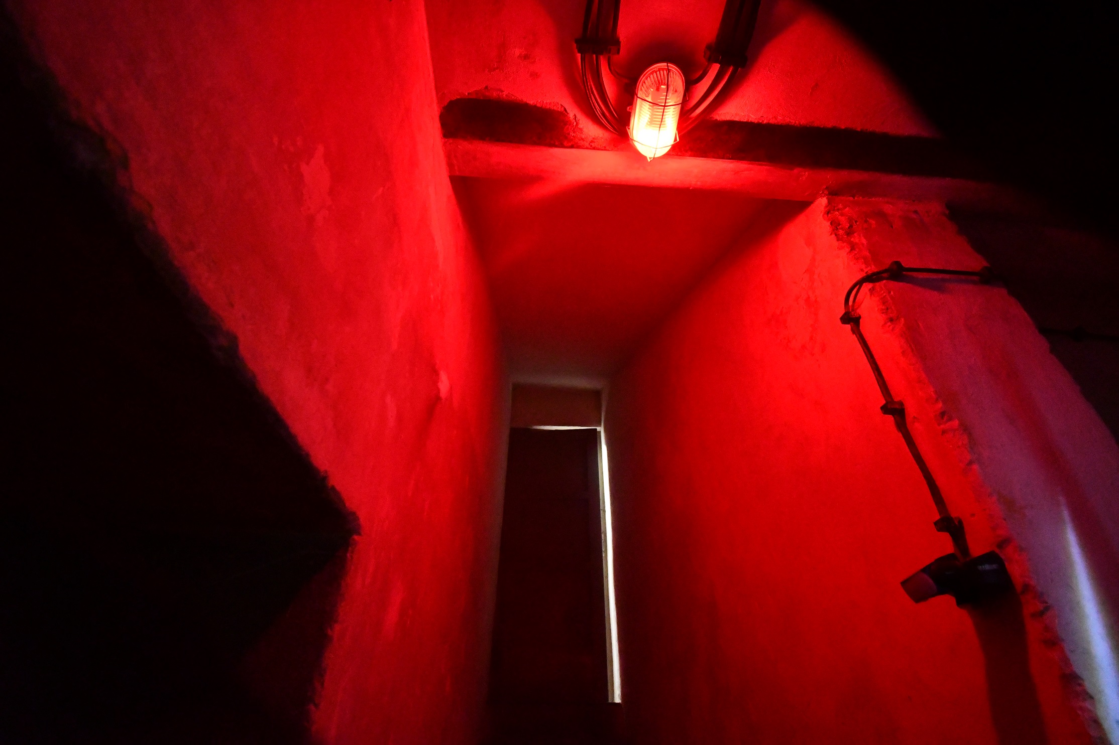 „...w kompletnej ciemności przesiedzieliśmy kilka dni, tracąc kompletnie poczucie czasu. Potem zainstalowano żarówkę, żarzącą się czerwonym nikłym światłem. Paliła się dla odmiany całą dobę, do reszty rozstrajając nerwy i wyżerając oczy.”