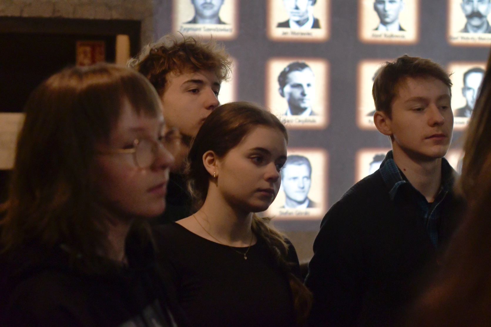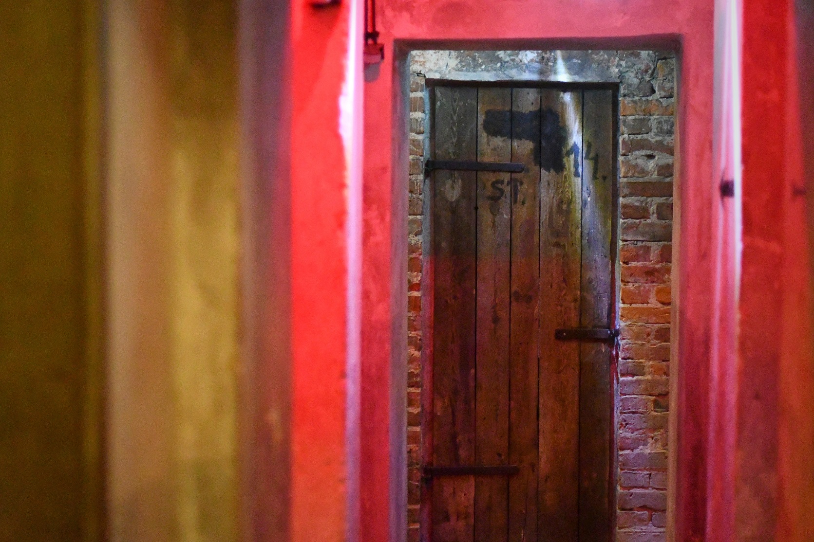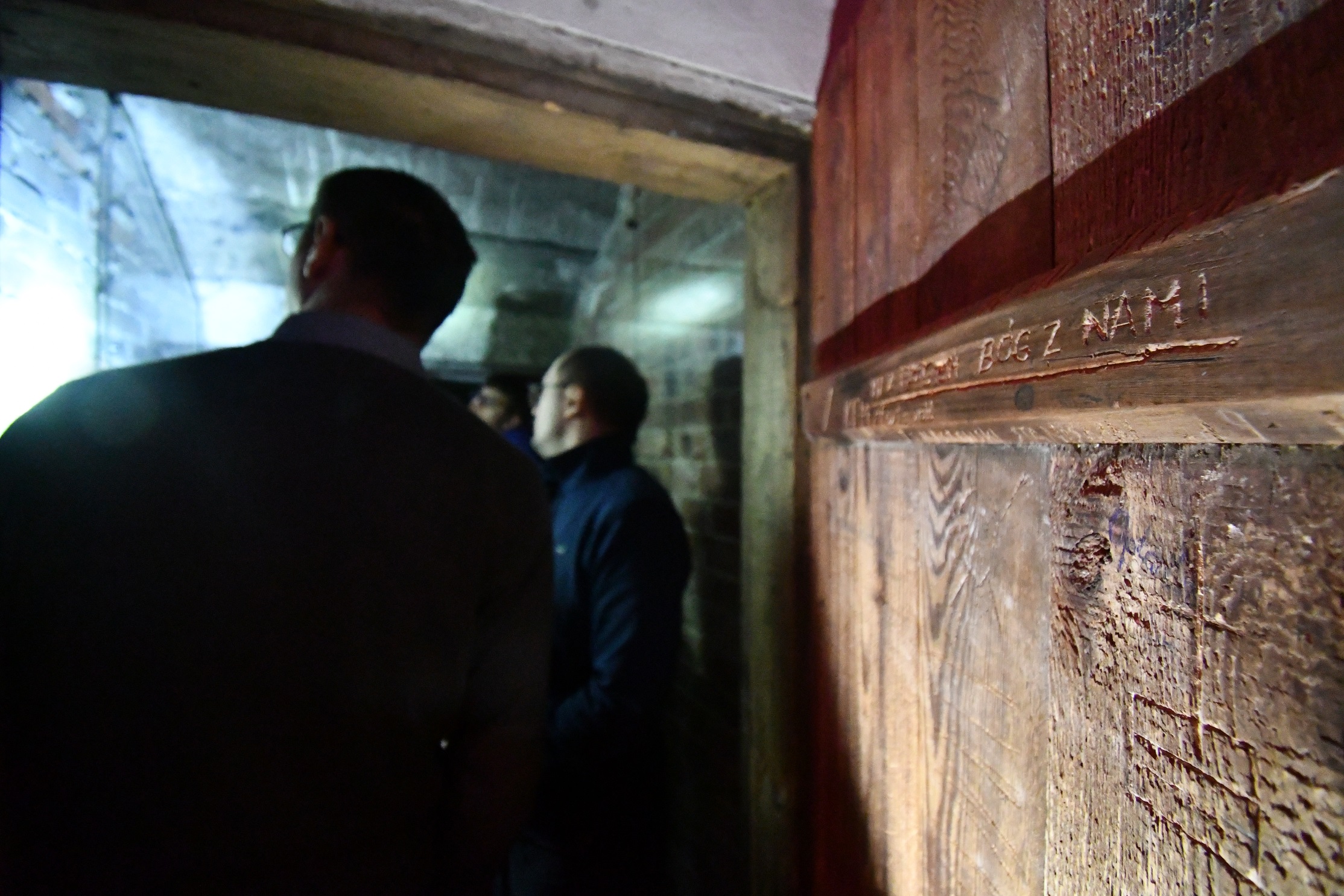 Po stromych stopniach zstępujemy w duszne, ciasne przestrzenie wąskich korytarzy i malutkich piwniczek, które służyły ongi za wieloosobowe cele aresztu. Na surowych cegłach, zaprawie i drewnie drzwi – wydrapane w ciemności inskrypcje uwięzionych – krzyczą do nas swoje ostatnie memento przed spodziewaną śmiercią. Są ważne osobiste daty i proste kalendarze, które pozwalały zachować wątłą łączność z przerwanym tokiem życia. A nade wszystko, wołające o pamięć – nazwiska…