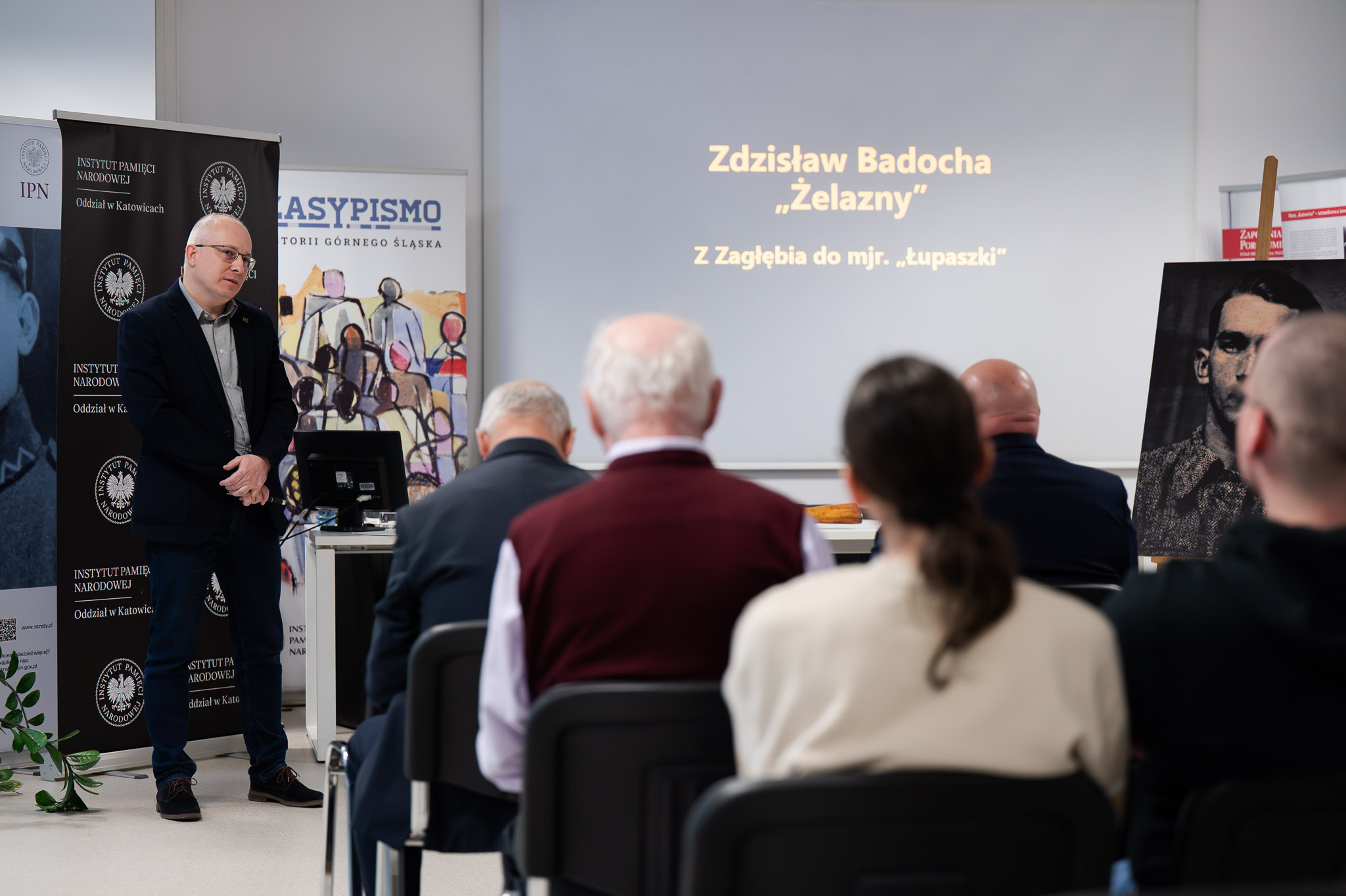 19 marca 2026 r. w Przystanku Historia Centrum Edukacyjnym IPN w Katowicach im. Henryka Sławika odbyło się kolejne spotkanie z cyklu „Czwartki z historią w IPN”. Tym razem wykład poświęcono postaci Zdzisława Badochy „Żelaznego” – jednego z najbardziej fascynujących, a zarazem tragicznych bohaterów polskiego podziemia niepodległościowego.