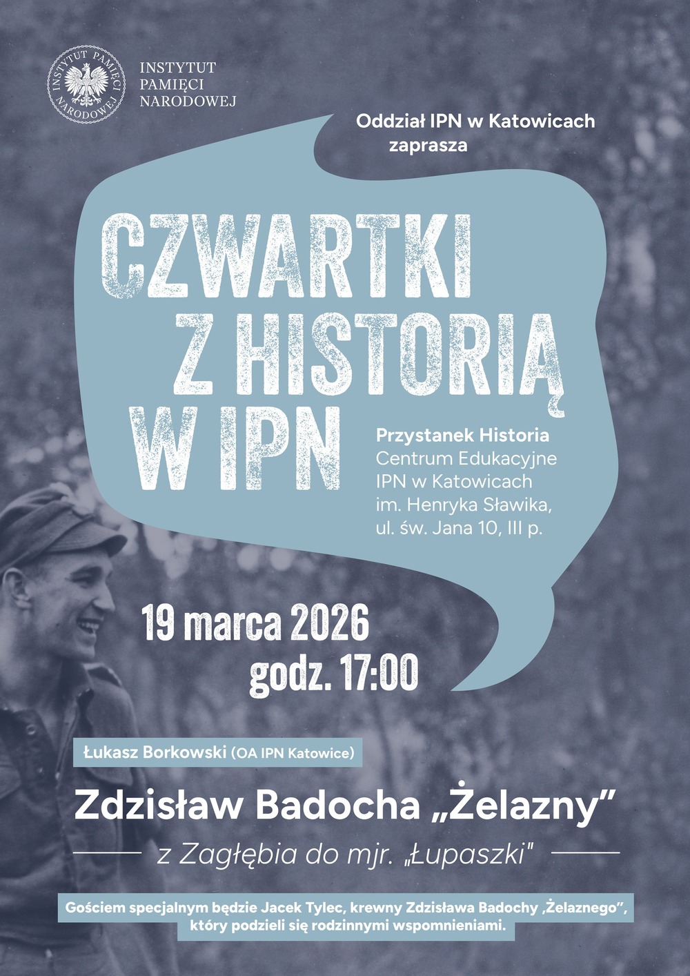 Tym razem naszym gościem będzie Łukasz Borkowski, pracownik Oddziałowego Archiwum Instytutu Pamięci Narodowej w Katowicach, który wygłosi wykład poświęcony „Żelaznemu”. Wyjątkowym gościem spotkania będzie również Jacek Tylec, krewny Zdzisława Badochy, który podzieli się rodzinnymi wspomnieniami.