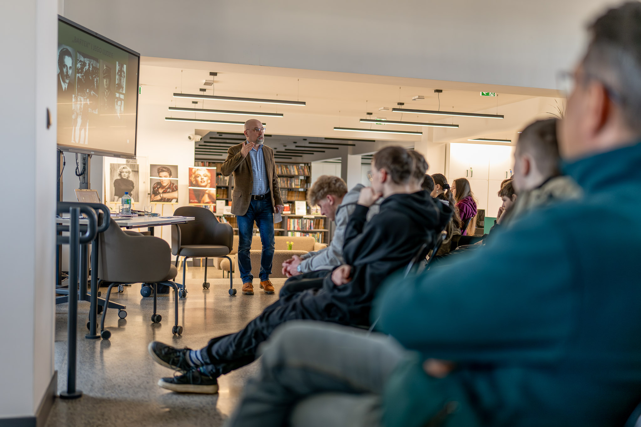 Prelekcja o akcji „Lawina” w w Miejskiej Bibliotece Publicznej w Pszowie, 5 marca 2026. Fot.: IPN Krzysztof Łojko