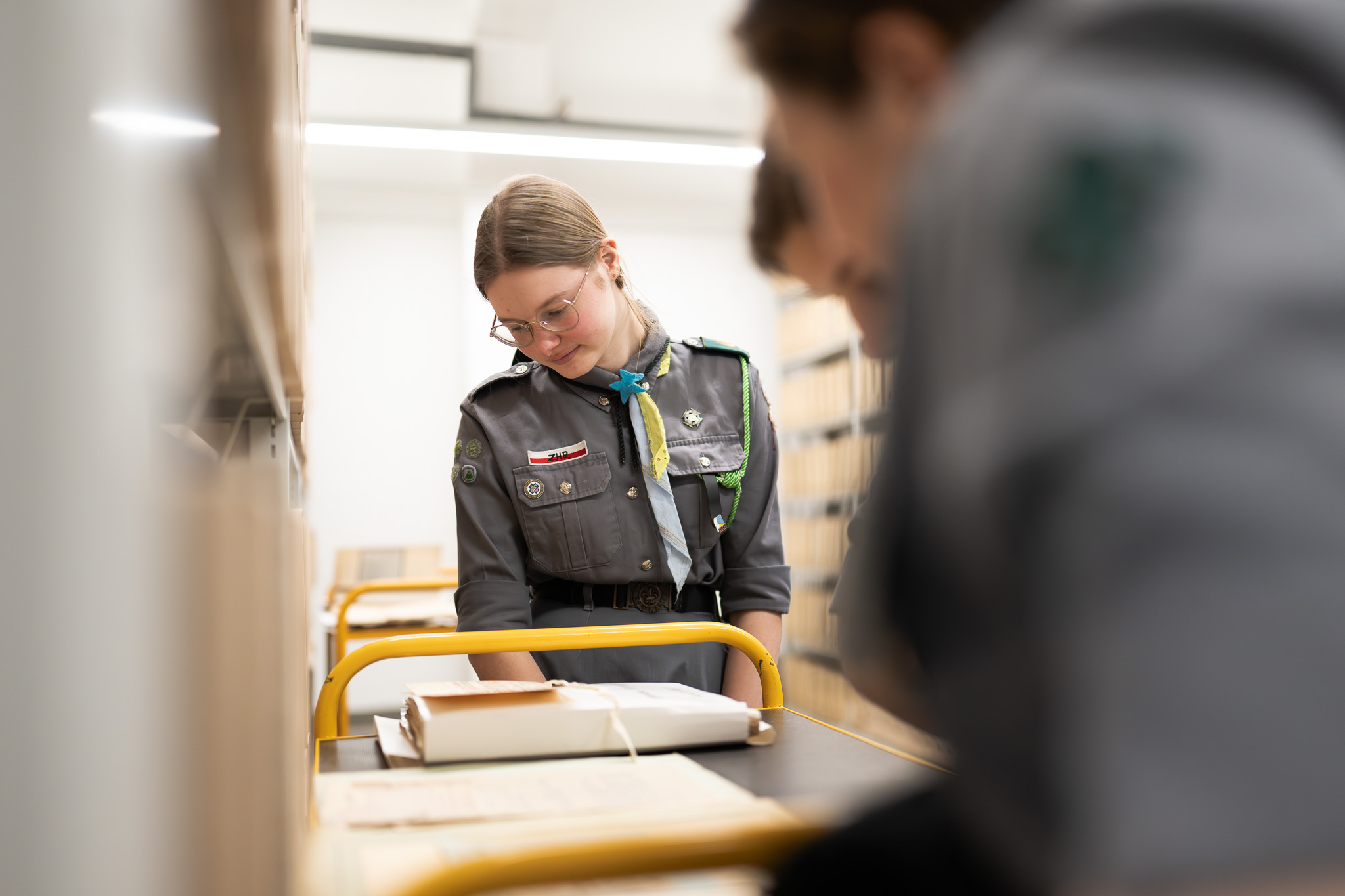 Zajęcia archiwalne dla harcerek z Hufca Harcerek ZHR na Podbeskidziu im. Zofii Kossak. Fot.: IPN Krzysztof Łojko