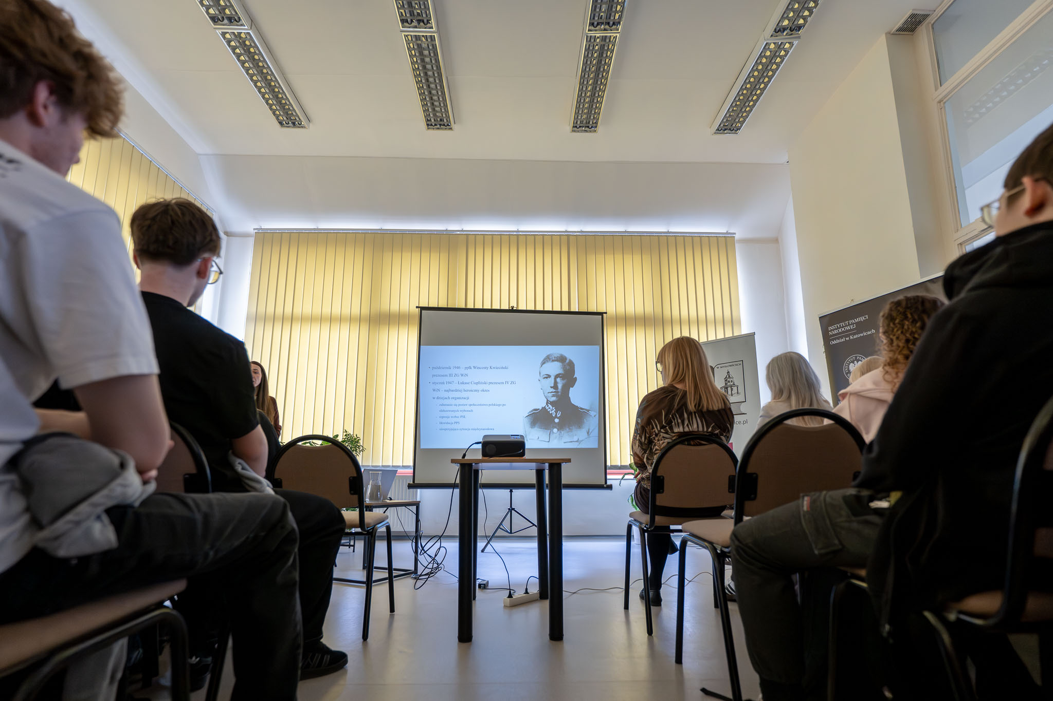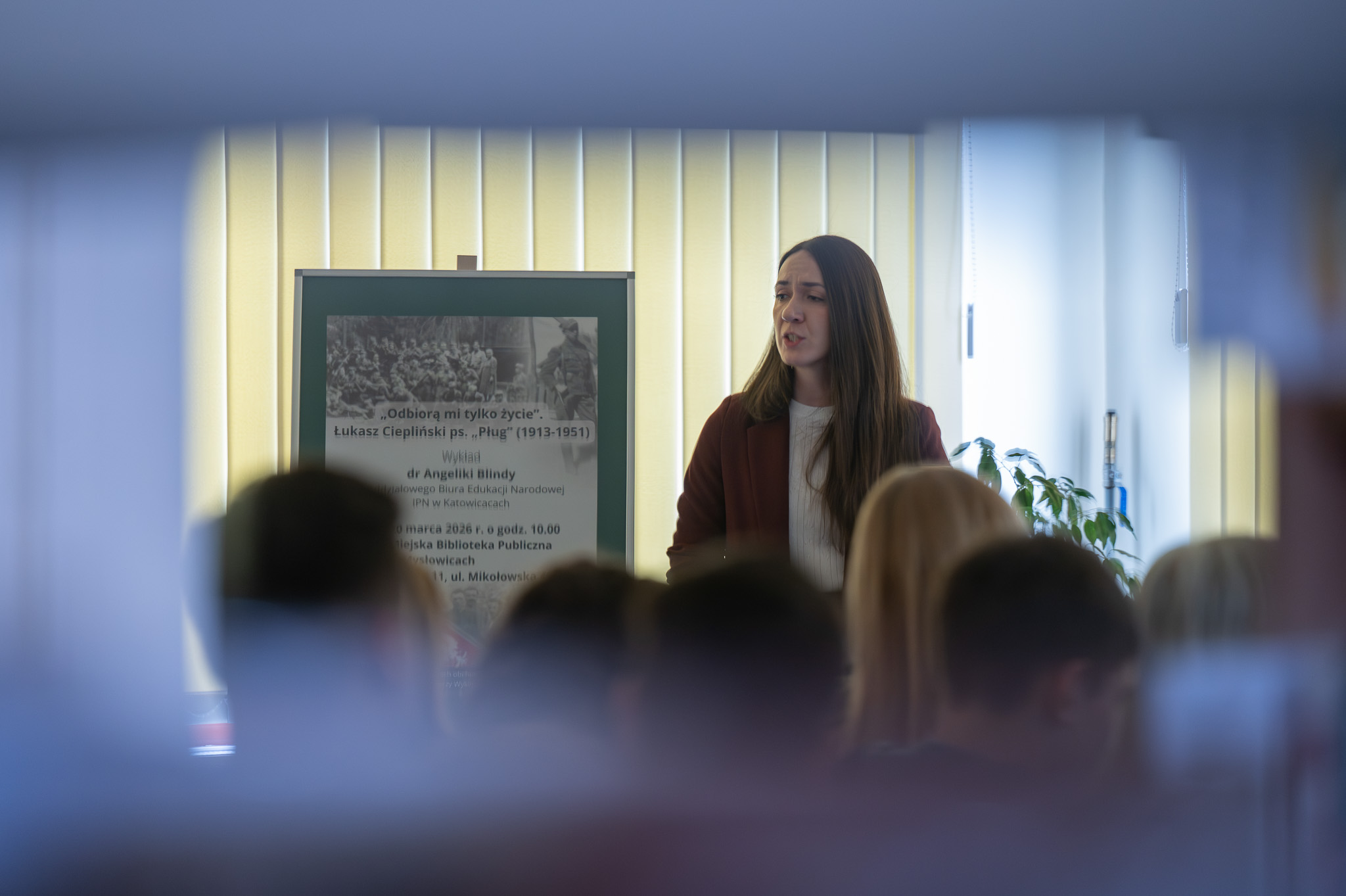 Tematem prelekcji była postać Łukasza Cieplińskiego ps. „Pług” – jednego z najważniejszych przedstawicieli polskiego podziemia niepodległościowego. Podczas spotkania przybliżono jego drogę życiową i działalność niepodległościową. Jako bardzo młody człowiek związał się z wojskiem, a po ukończeniu Szkoły Podchorążych Piechoty w Ostrowi Mazowieckiej-Komorowie rozpoczął służbę oficera zawodowego. We wrześniu 1939 roku walczył w 62. pułku piechoty jako dowódca kompanii działek przeciwpancernych. Szczególnym bohaterstwem wykazał się podczas bitwy nad Bzurą, gdzie samodzielnie zniszczył osiem czołgów nieprzyjaciela, za co został odznaczony Krzyżem Virtuti Militari.