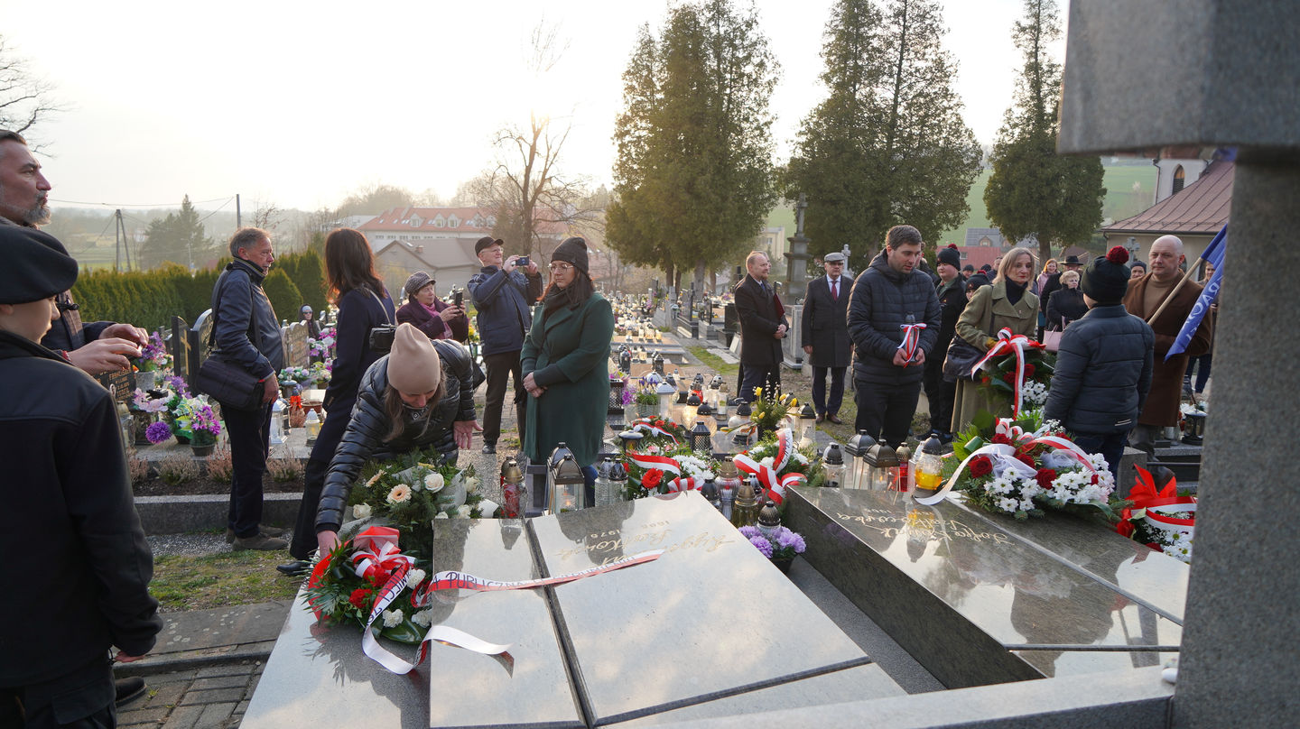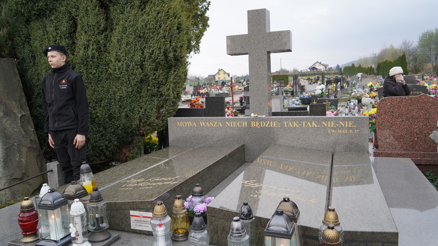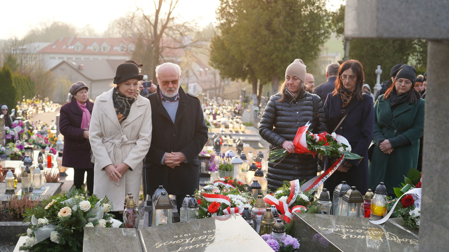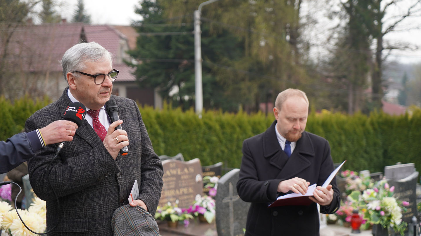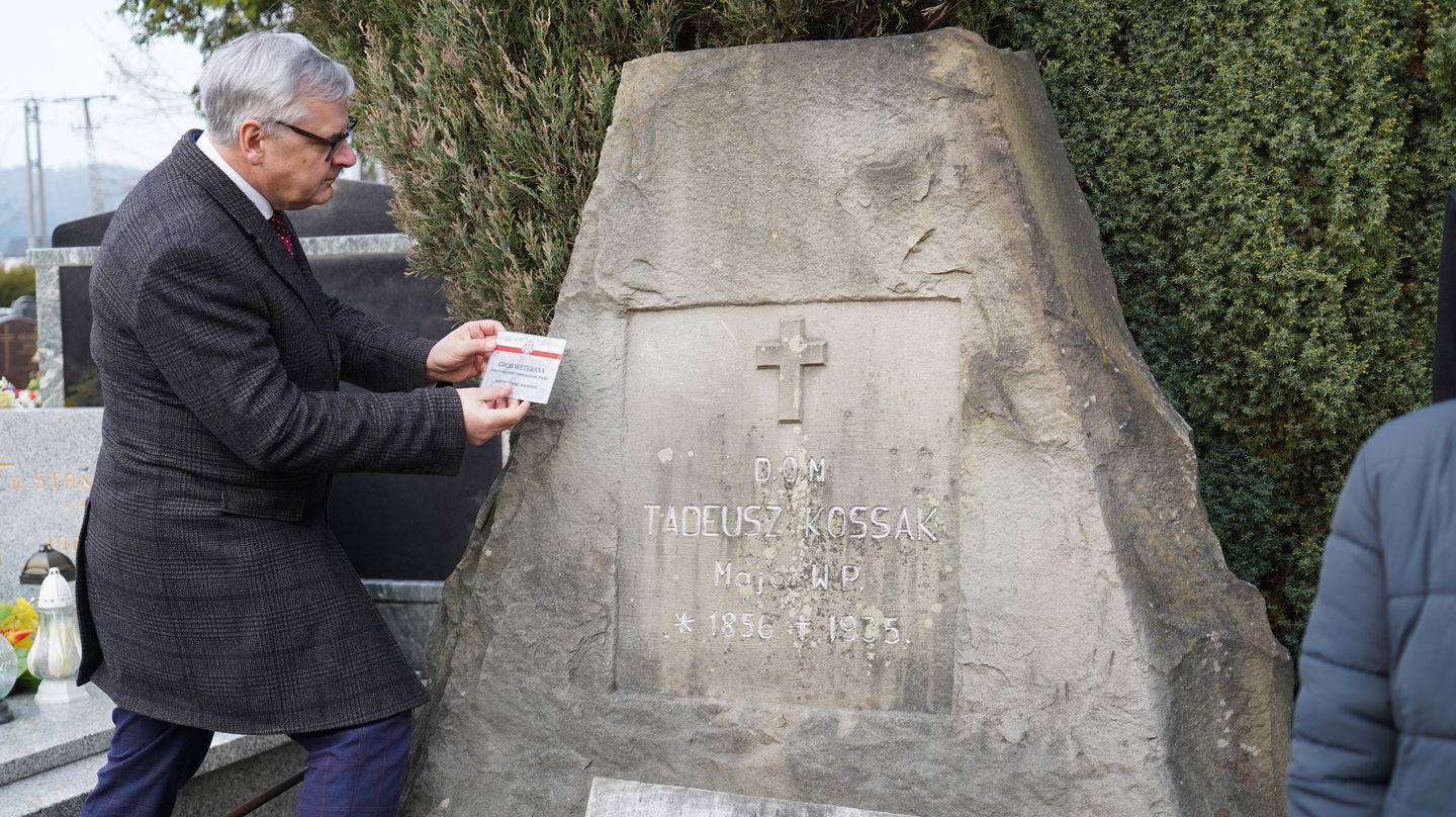 Następnie uczestnicy udali się na pobliski cmentarz, gdzie mieli możliwość wysłuchania dr. Andrzeja Sznajdera, dyrektora Oddziału IPN w Katowicach, który przypomniał, że Rodzina Kossaków to nie tylko malarze, artyści, pisarze czy naukowcy ale to ród, który zawsze służył Ojczyźnie. Goście zapoznali się również z biogramem mjr. Tadeusza Kossaka – ojca pisarki, po czym jego grób znajdujący się obok grobu córki został oznaczony przez dra Andrzeja Sznajdera znakiem „Grób weterana walk o wolność i niepodległość Polski”.