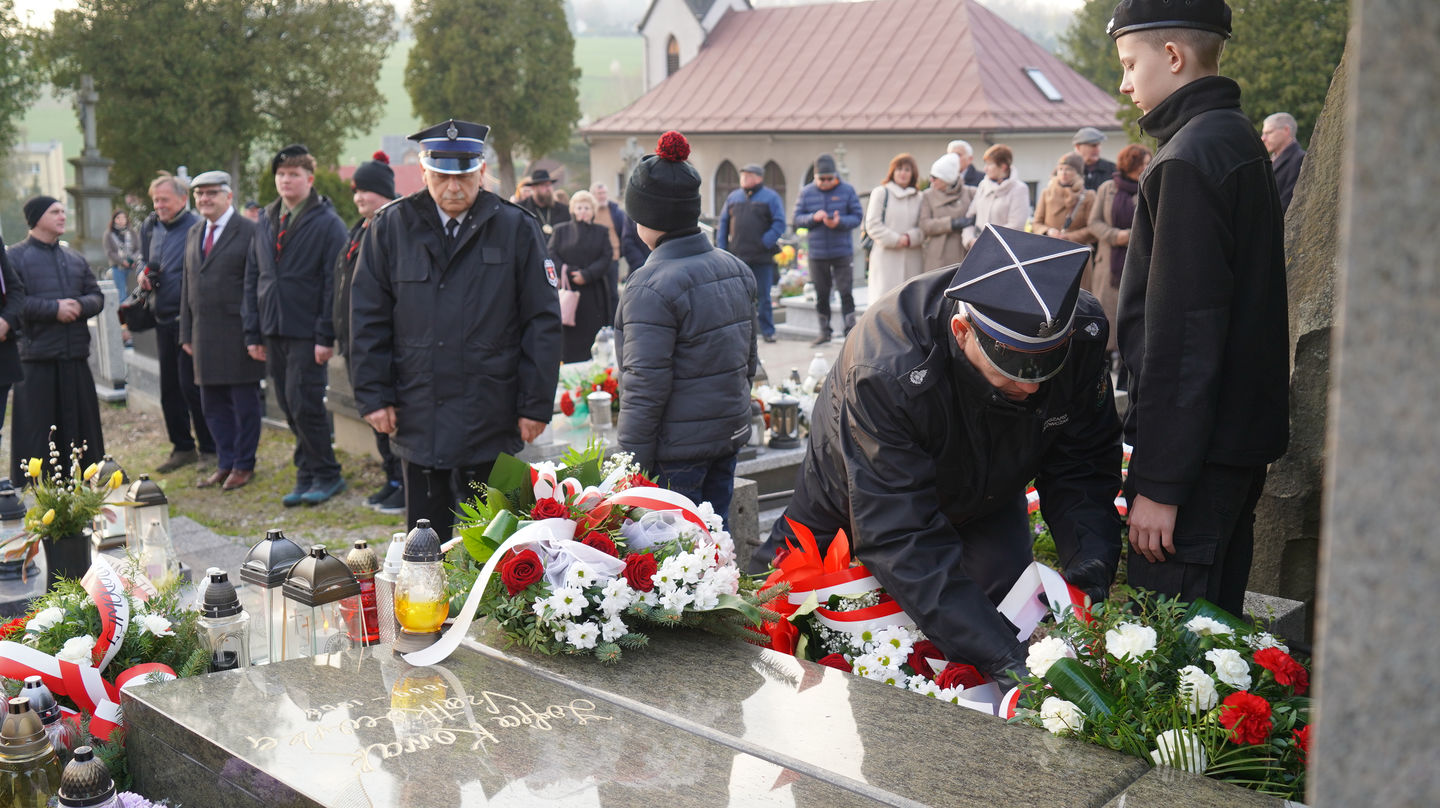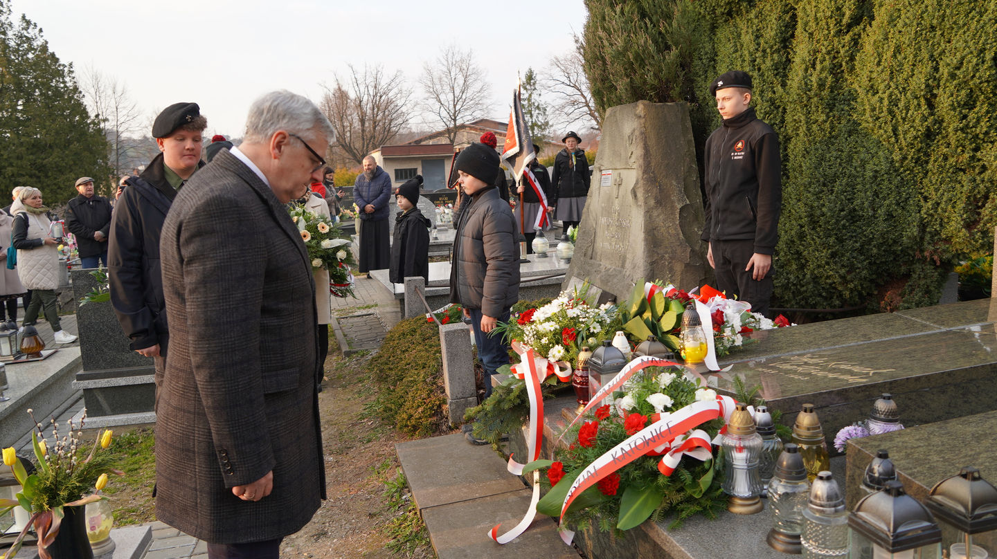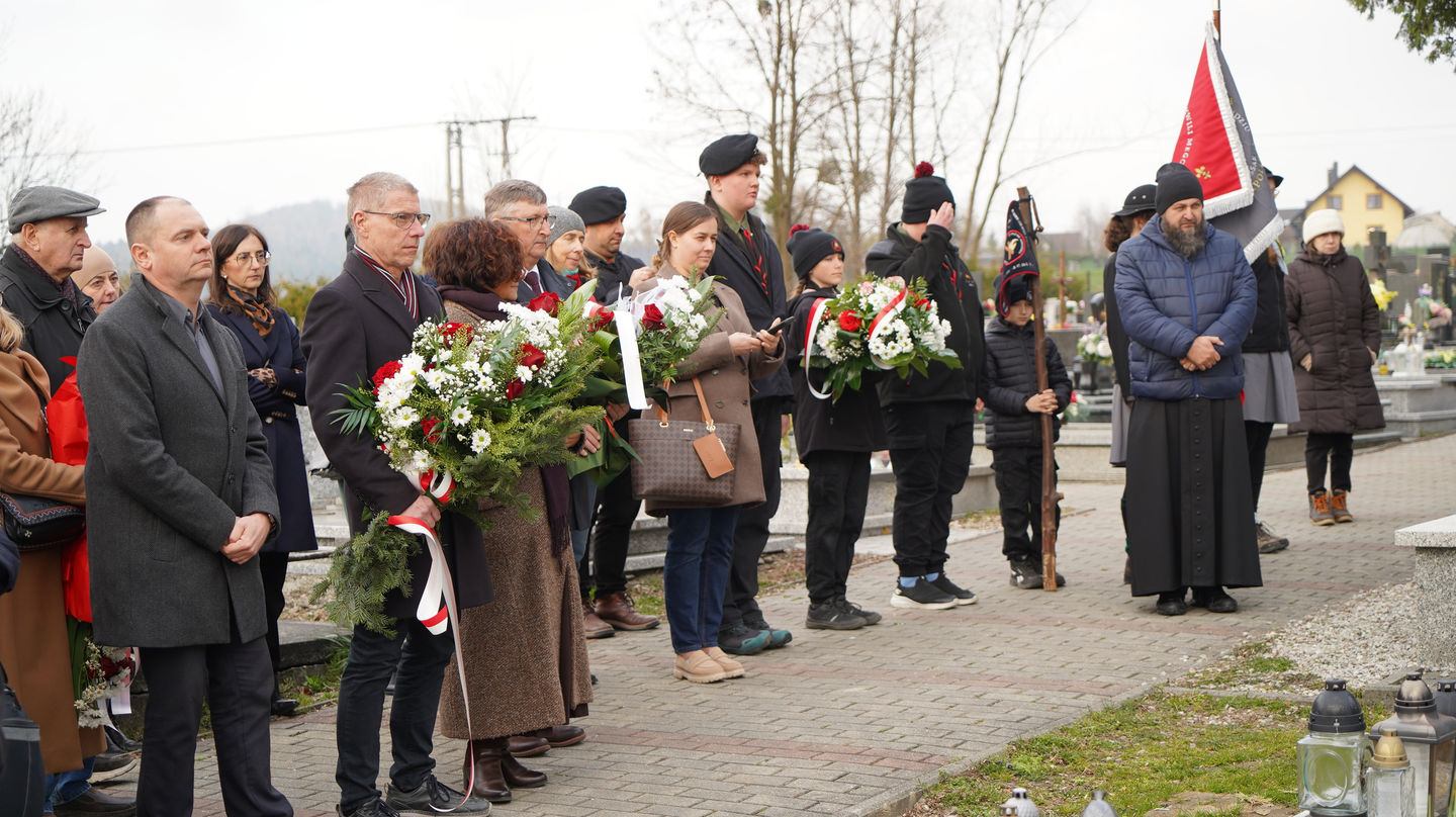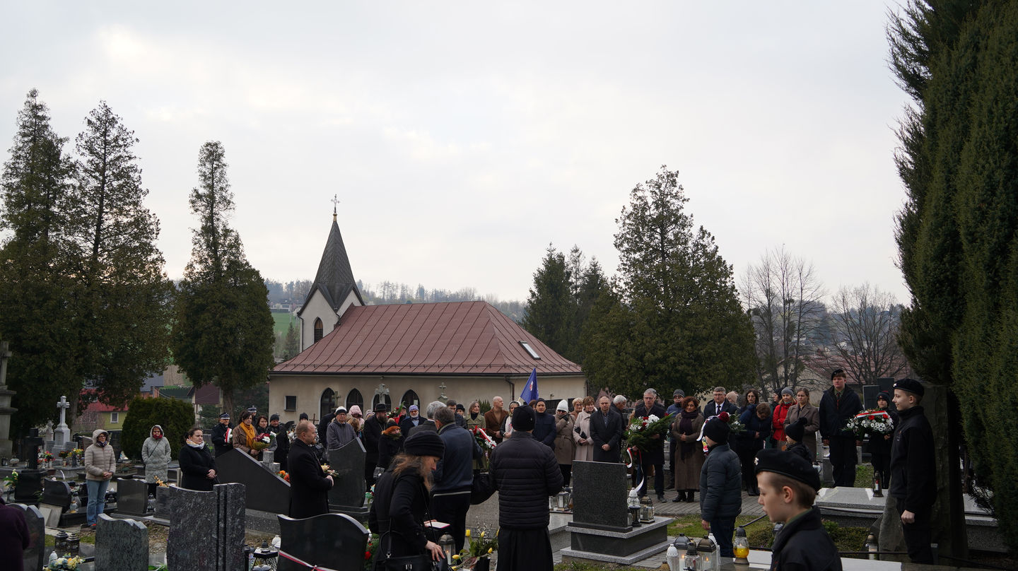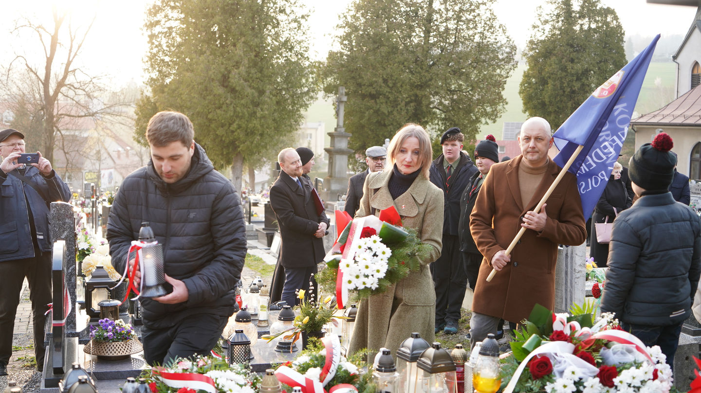 Następnie uczestnicy udali się na pobliski cmentarz, gdzie mieli możliwość wysłuchania dr. Andrzeja Sznajdera, dyrektora Oddziału IPN w Katowicach, który przypomniał, że Rodzina Kossaków to nie tylko malarze, artyści, pisarze czy naukowcy ale to ród, który zawsze służył Ojczyźnie. Goście zapoznali się również z biogramem mjr. Tadeusza Kossaka – ojca pisarki, po czym jego grób znajdujący się obok grobu córki został oznaczony przez dra Andrzeja Sznajdera znakiem „Grób weterana walk o wolność i niepodległość Polski”.