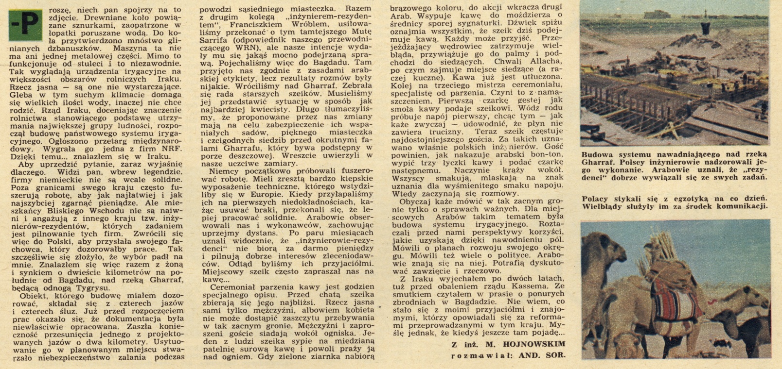 Numer, o którym mowa, został dołączony do sprawy operacyjnej prowadzonej przez SB w Zabrzu w związku z anonimem, jaki wpłynął do redakcji „Panoramy”. Jego nadawca nie został ustalony, choć był pilnie poszukiwany – a to ze względu na „wrogie” treści zawarte w liście. Nieznany zabrzanin krytykował artykuł „Polacy nad rzeką Gharraf”, opowiadający o pracy polskich inżynierów przy budowie systemu irygacyjnego w Iraku, nad rzeką/kanałem Al-Gharraf właśnie. Jednym z zadań Polaków było kontrolowanie zatrudnionych tam niemieckich (z RFN oczywiście) robotników, których pracy brakowało rzetelności. I te uwagi bardzo nie spodobały się autorowi anonimu: w ostrych i wulgarnych słowach wyraził zdanie o wyższości niemieckiej myśli technicznej i w takich samych słowach wysłał polskich inżynierów i redakcję „Panoramy” w miejsce, do którego nawet król chodzi piechotą. Ten polsko-niemiecki antagonizm, dość długo utrzymujący się na terenach znajdujących się poza Polską przed 1945 r., nie jest jednak głównym bohaterem naszej opowieści. Są nim informacje prasowe sprzed 60 lat, które najlepiej opisują życie w gomułkowskiej Polsce, pokazują ówczesne problemy, trendy i mentalność. Najciekawsze dołączamy w formie skanów, tutaj zrobimy krótki przegląd treści z numeru.