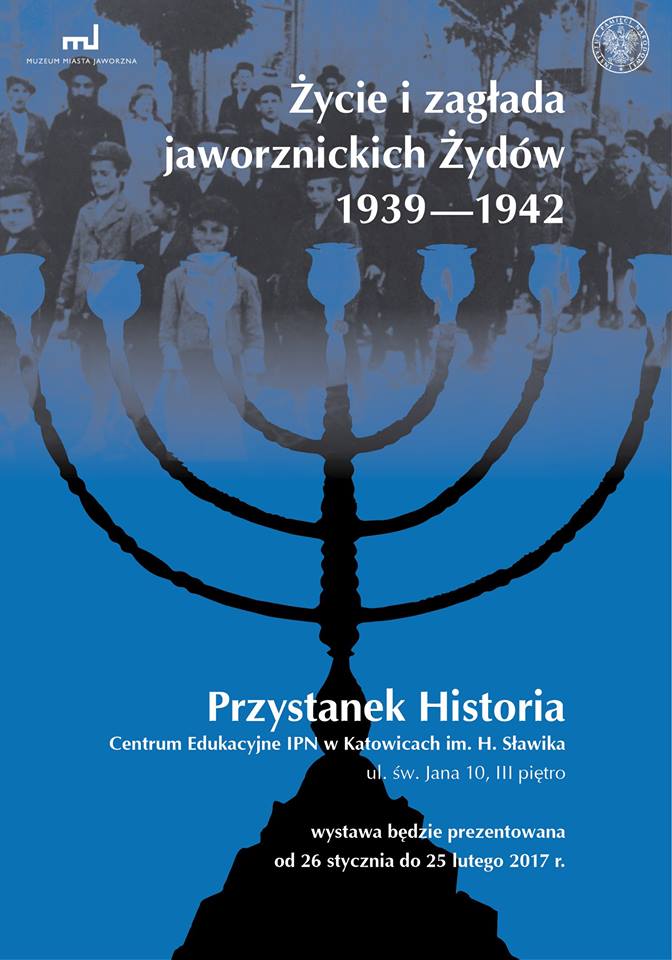 27 stycznia obchodzimy Międzynarodowy Dzień Pamięci o Ofiarach Holokaustu. Z tej okazji w  Centrum Edukacyjnym IPN w Katowicach „Przystanek Historia” im. Henryka Sławika, przy ul. Św. Jana 10 (III piętro) od 26 stycznia do 25 lutego 2017 r.  prezentujemy wystawę „Życie i zagłada jaworznickich Żydów 1939-1942”.  Początkowi ekspozycji towarzyszyła prelekcja autorki wystawy, Barbary Stanek z Muzeum Miasta Jaworzna, o tym samym tytule, która odbyła się 26 stycznia o godz. 17.00. Z kolei 27 stycznia o każdej pełnej godzinie od 8.00 do 16.00 prezentowany był film „Pozostały po nich fotografie", który jest uzupełnieniem ekspozycji.