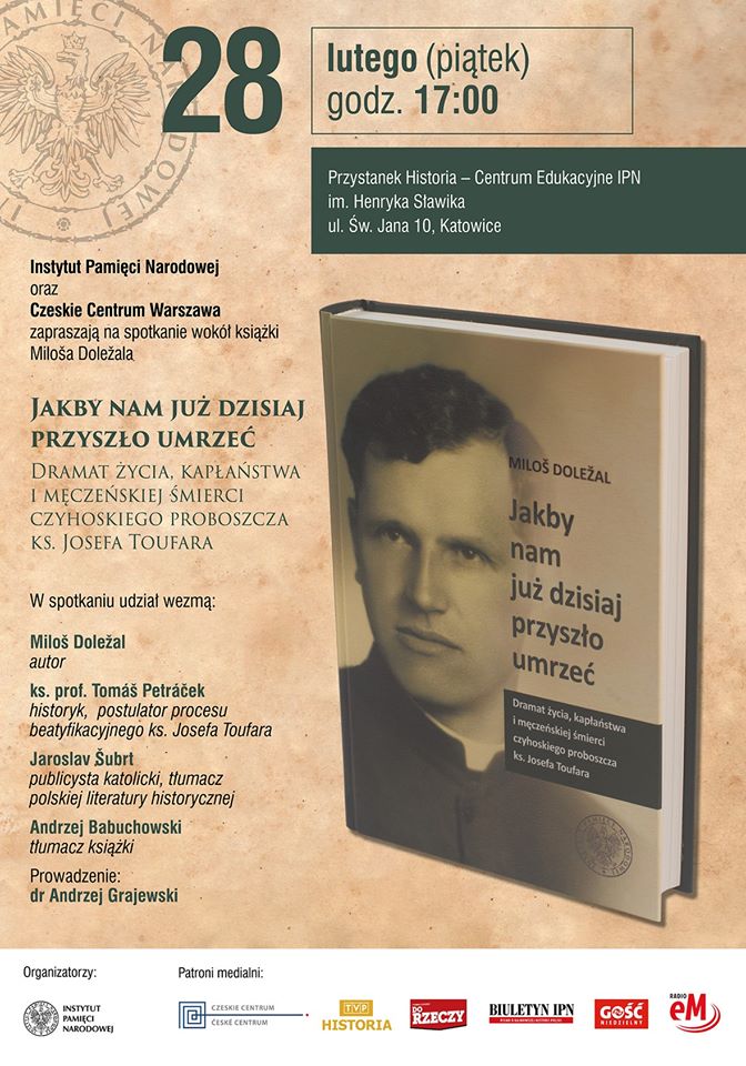 28 lutego 2020 r., o 17.00, w Przystanku Historia – Centrum Edukacyjnym IPN w Katowicach im. Henryka Sławika (ul. Św. Jana 10) odbyło się spotkanie wokół książki Miloša Doležala „Jakby nam już dzisiaj przyszło umrzeć. Dramat życia, kapłaństwa i męczeńskiej śmierci czyhoskiego proboszcza – ks. Josefa Toufara”.
