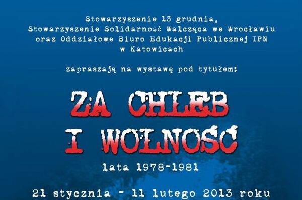 21/01/2013Prezentacja wystawy „Za chleb i wolność. Lata 1978–1981” – Częstochowa, 21 stycznia – 11 lutego 2013