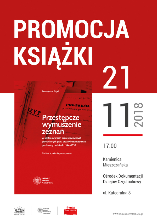 21/11/2018„Przestępcze wymuszenie zeznań w postępowaniach przygotowawczych prowadzonych przez organy bezpieczeństwa publicznego w latach 1944–1956“ – Częstochowa, 21 listopada 2018