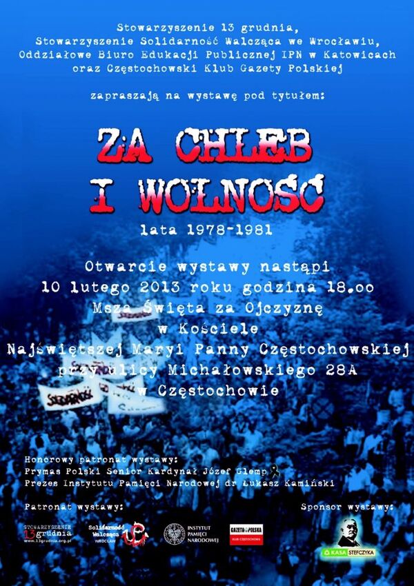 10/02/2013Otwarcie wystawy „Za chleb i wolność. Lata 1978–1981” – Częstochowa, 10 lutego 2013