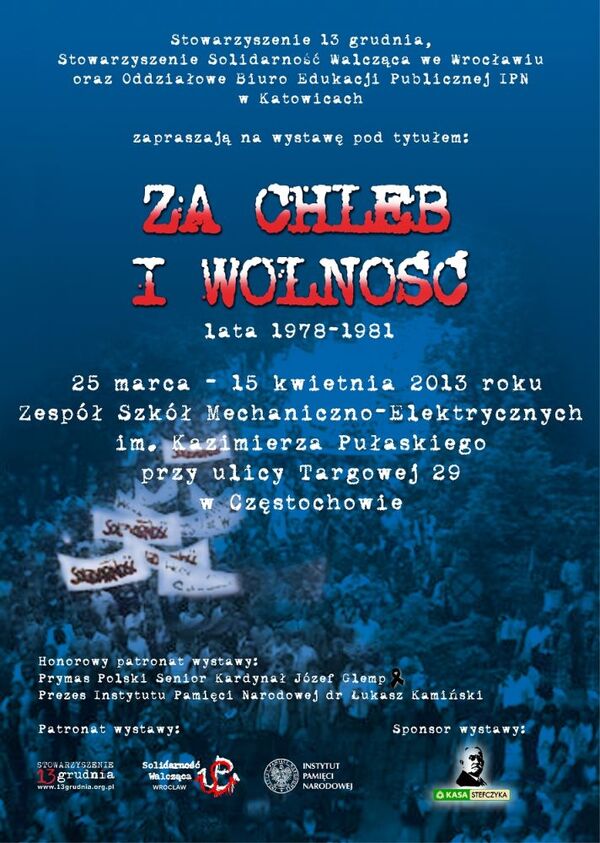 25/03/2013Prezentacja wystawy „Za chleb i wolność. Lata 1978–1981” – Częstochowa, 25 marca – 15 kwietnia 2013