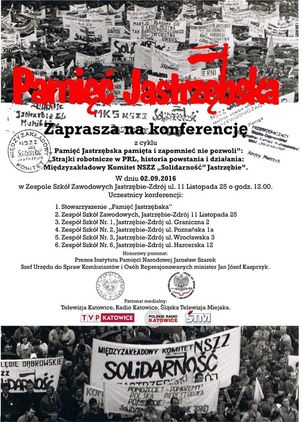 22/08/2016Konferencja „Strajki robotnicze w PRL, historia powstania i działania: Międzyzakładowy Komitet NSZZ »Solidarność« Jastrzębie” – Jastrzębie–Zdrój, 2 września 2016