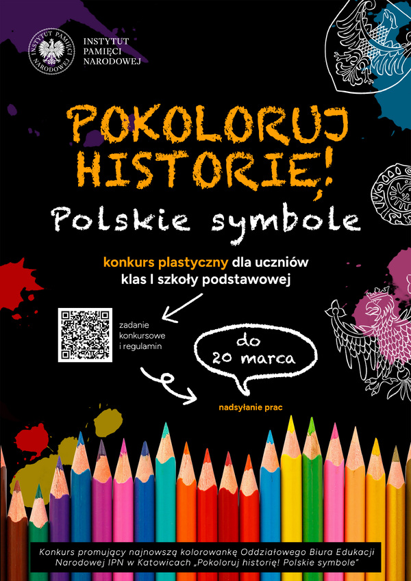 20/03/2026KonkursKonkurs plastyczny dla uczniów klas I szkół podstawowych. „Pokoloruj historię! Polskie symbole“ - termin nadsyłania prac upływa 20 marca 2026